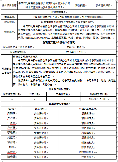 KLDAP[2025]-3.34中國石化銷售股份有限公司陜西榆林石油分公司神木天源加油站安全現(xiàn)狀評價
