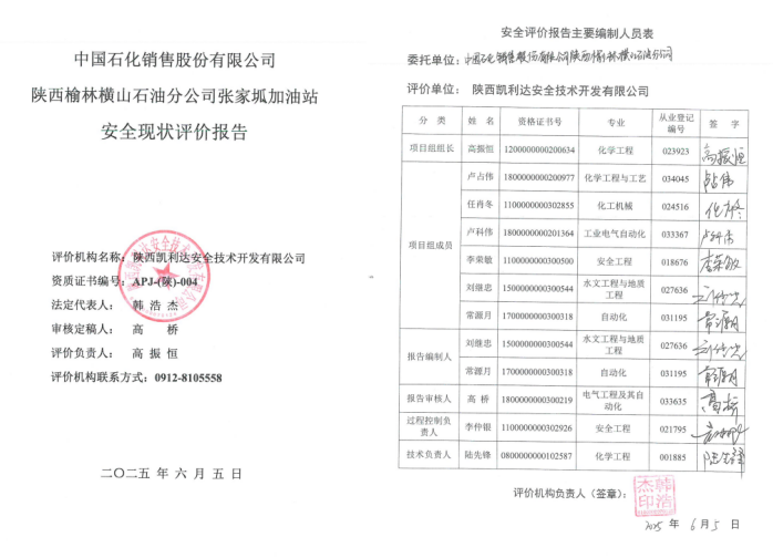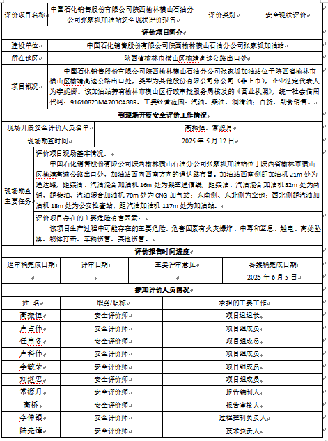 KLDAP[2025]-3.36中國石化銷售股份有限公司陜西榆林石油分公司張家坬加油站安全現狀評價