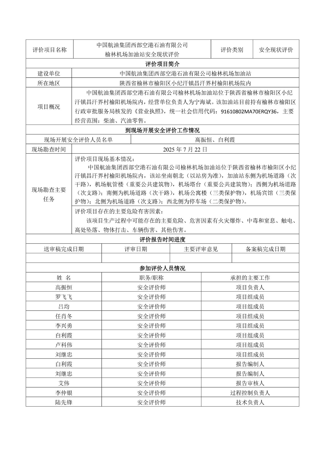 KLDAP [2025]-3.19中國航油集團西部空港石油有限公司榆林機場加油站安全現狀評價