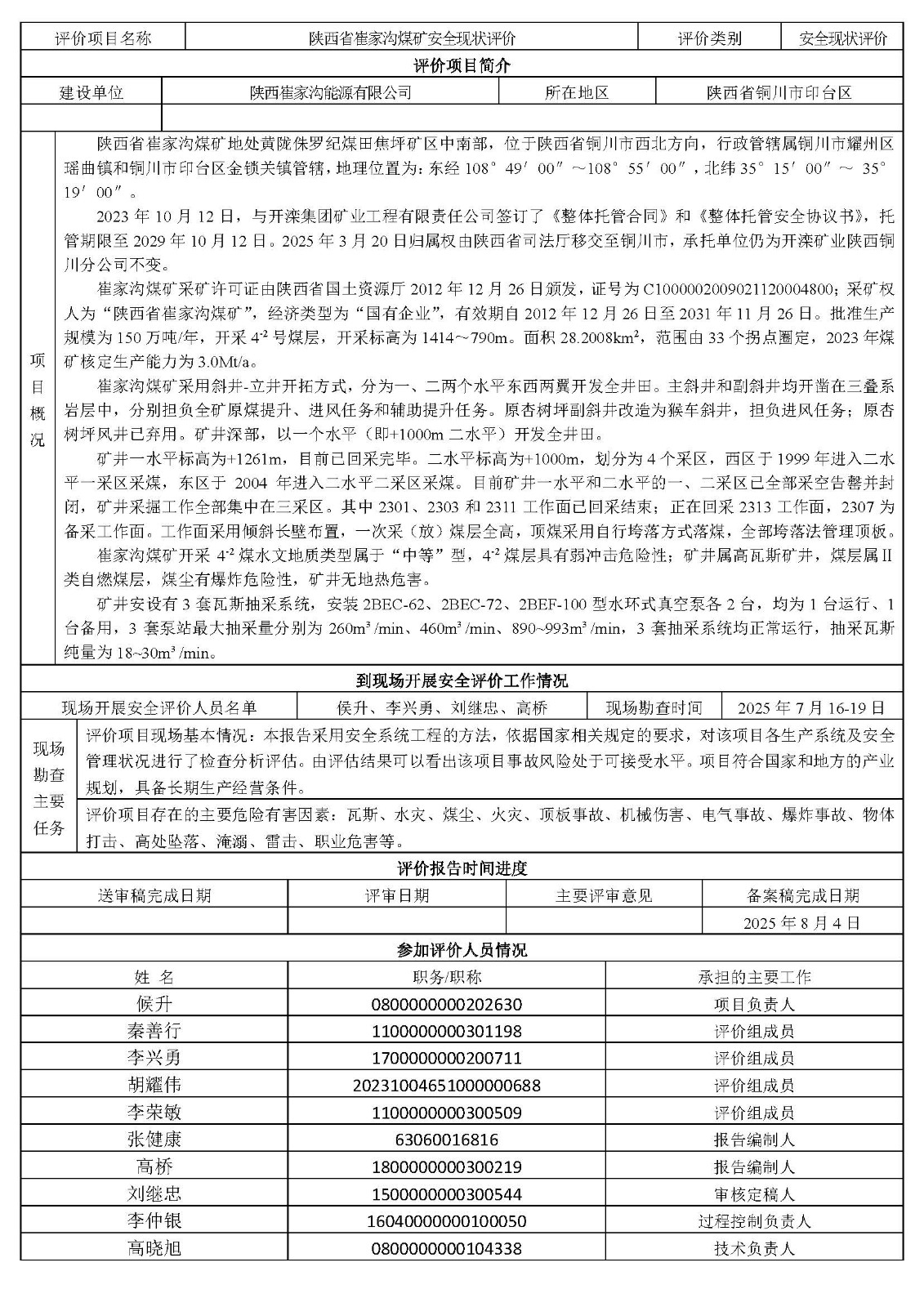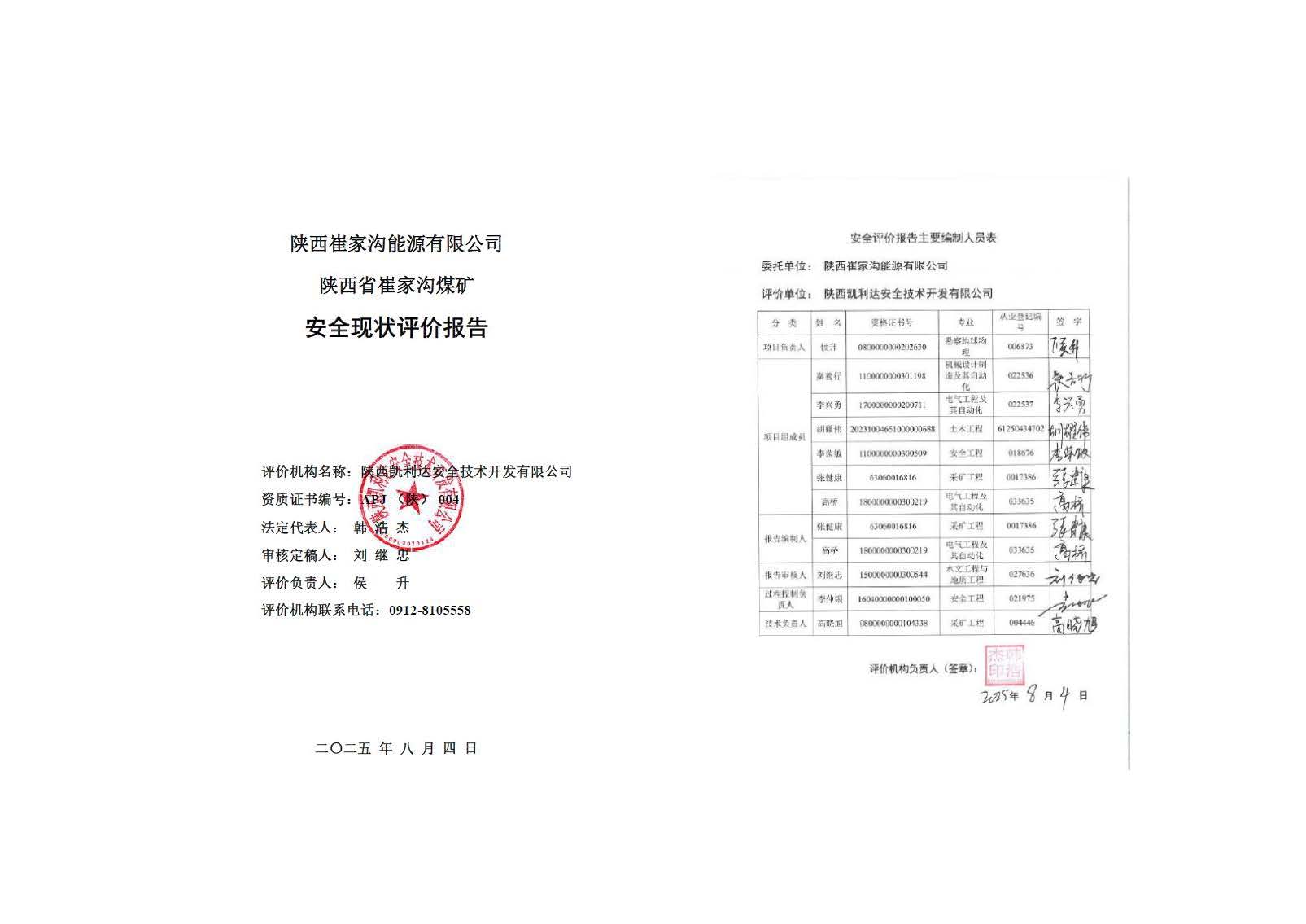 陜西崔家溝能源有限公司陜西省崔家溝煤礦安全現狀評價
