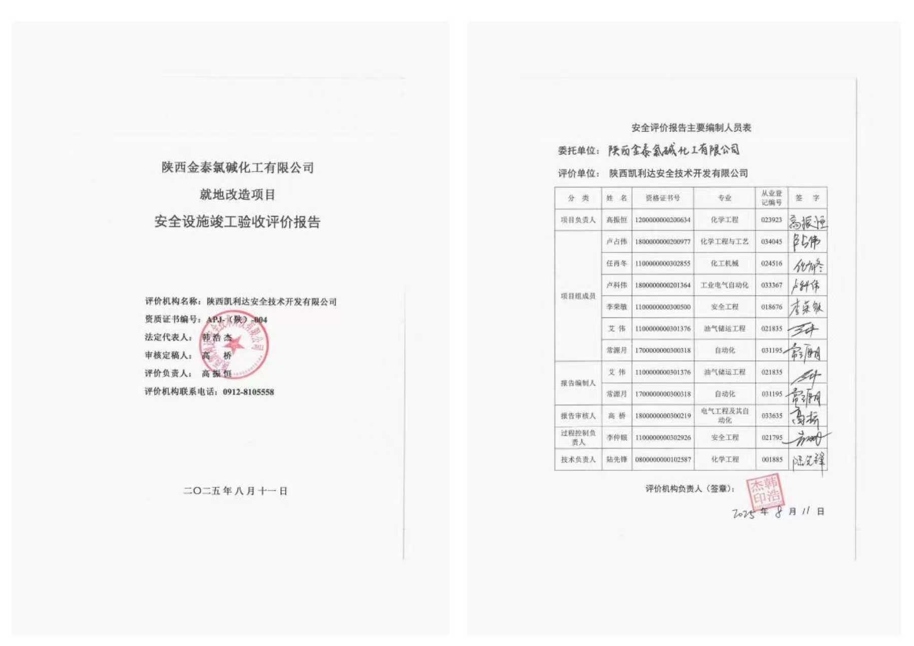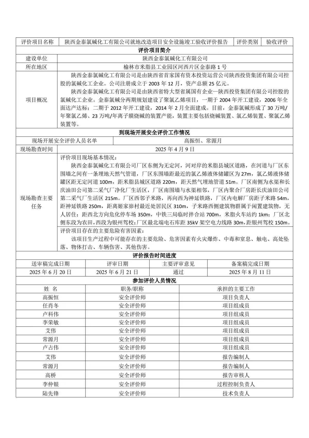 陜西金泰氯堿化工有限公司就地改造項目安全設施竣工驗收評價報告