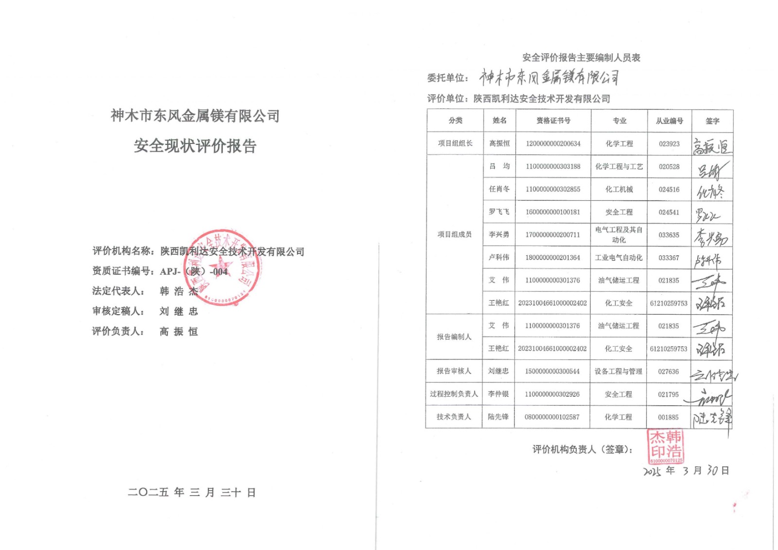 KLDAP[2024]-3.22神木市東風金屬鎂有限公司安全現狀評價
