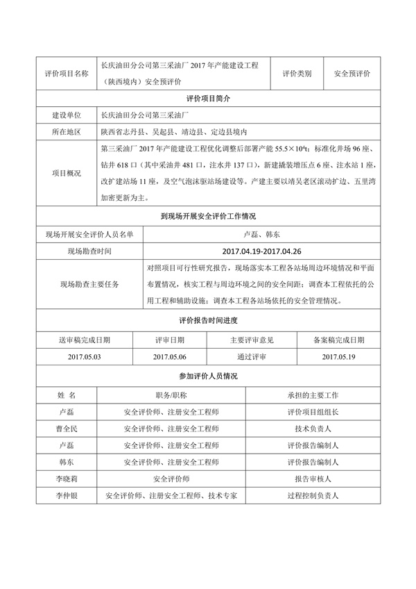 長慶油田分公司第三采油廠2017年產能建設工程(陜西境內)安全預
