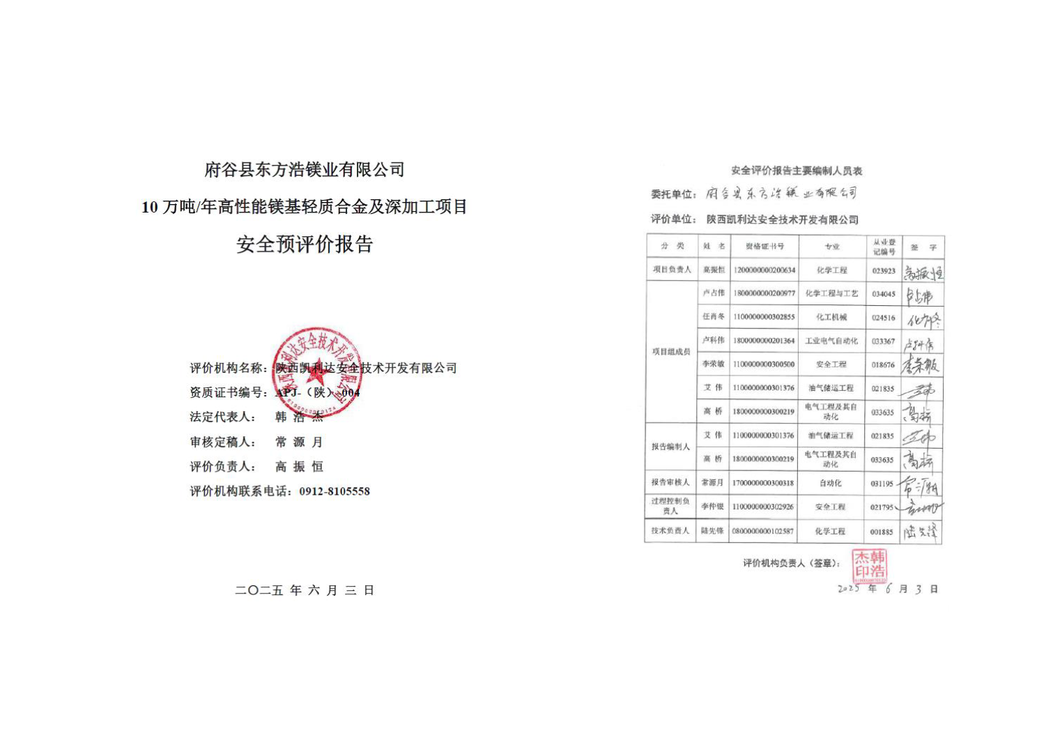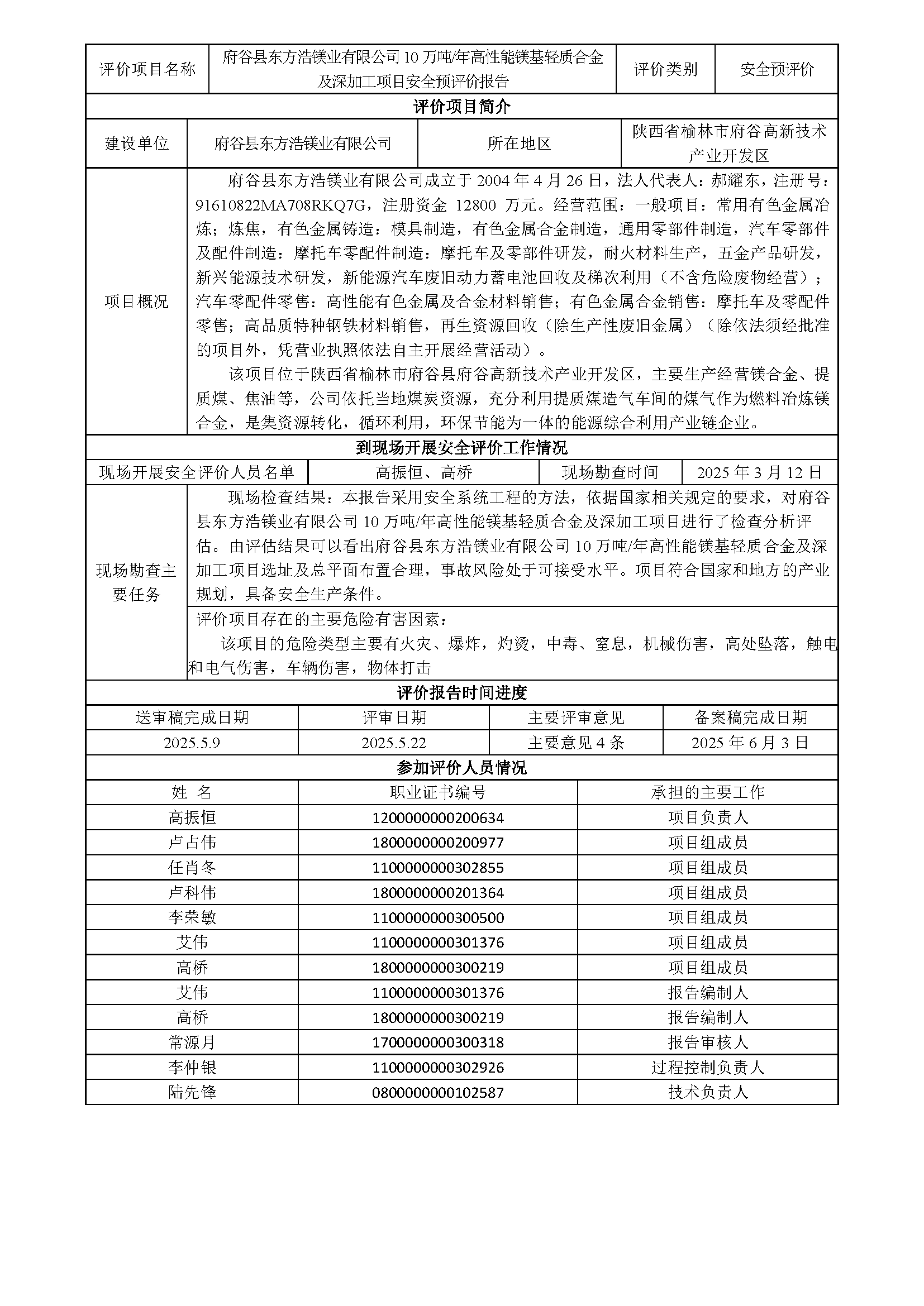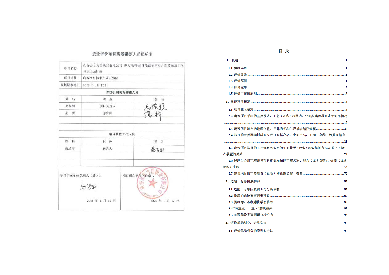 KLDAP-[2025]-2.1谷縣東方浩鎂業有限公司10萬噸年高性能鎂基輕質合金及深加工項目安全預評價安全預評價報告