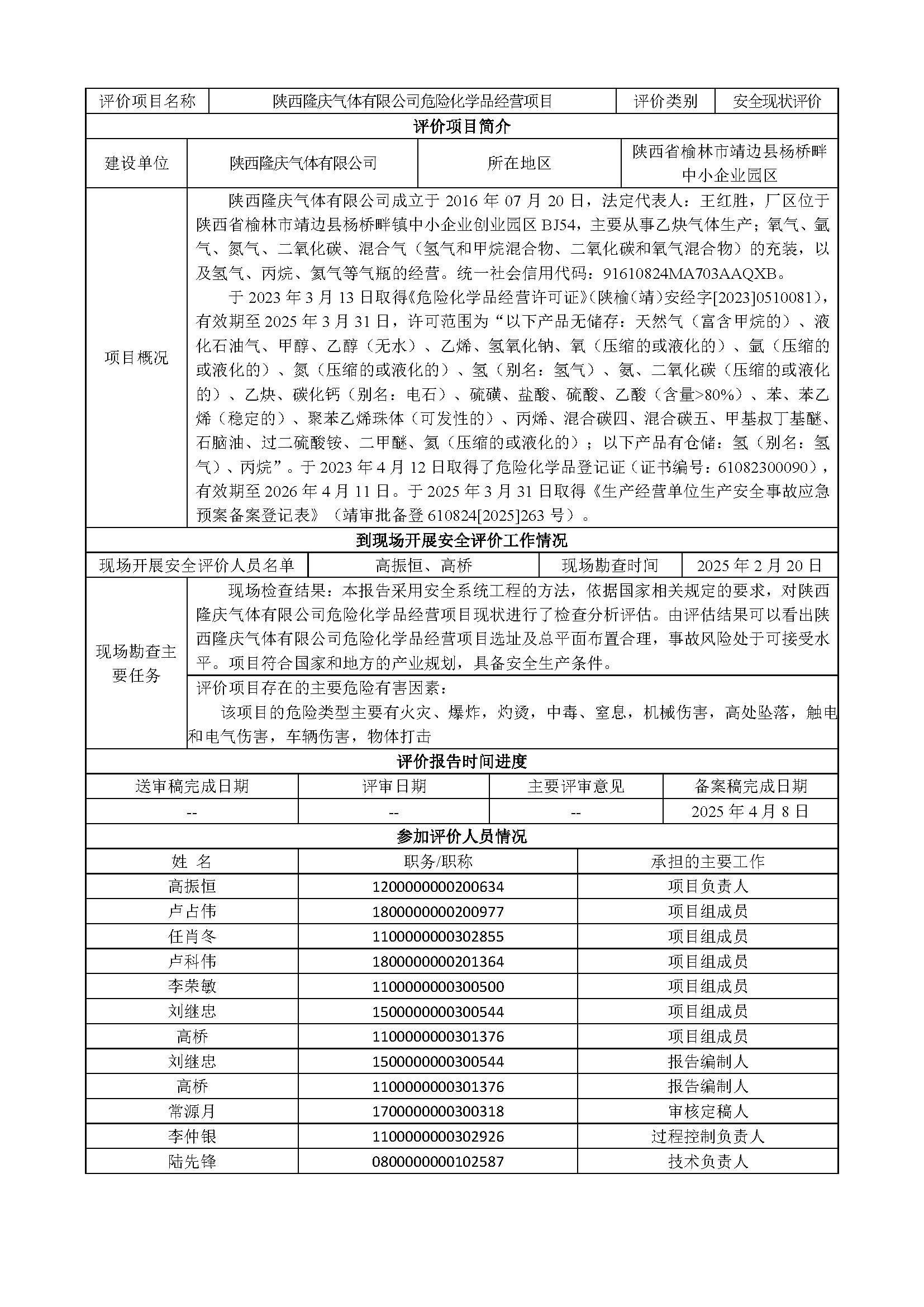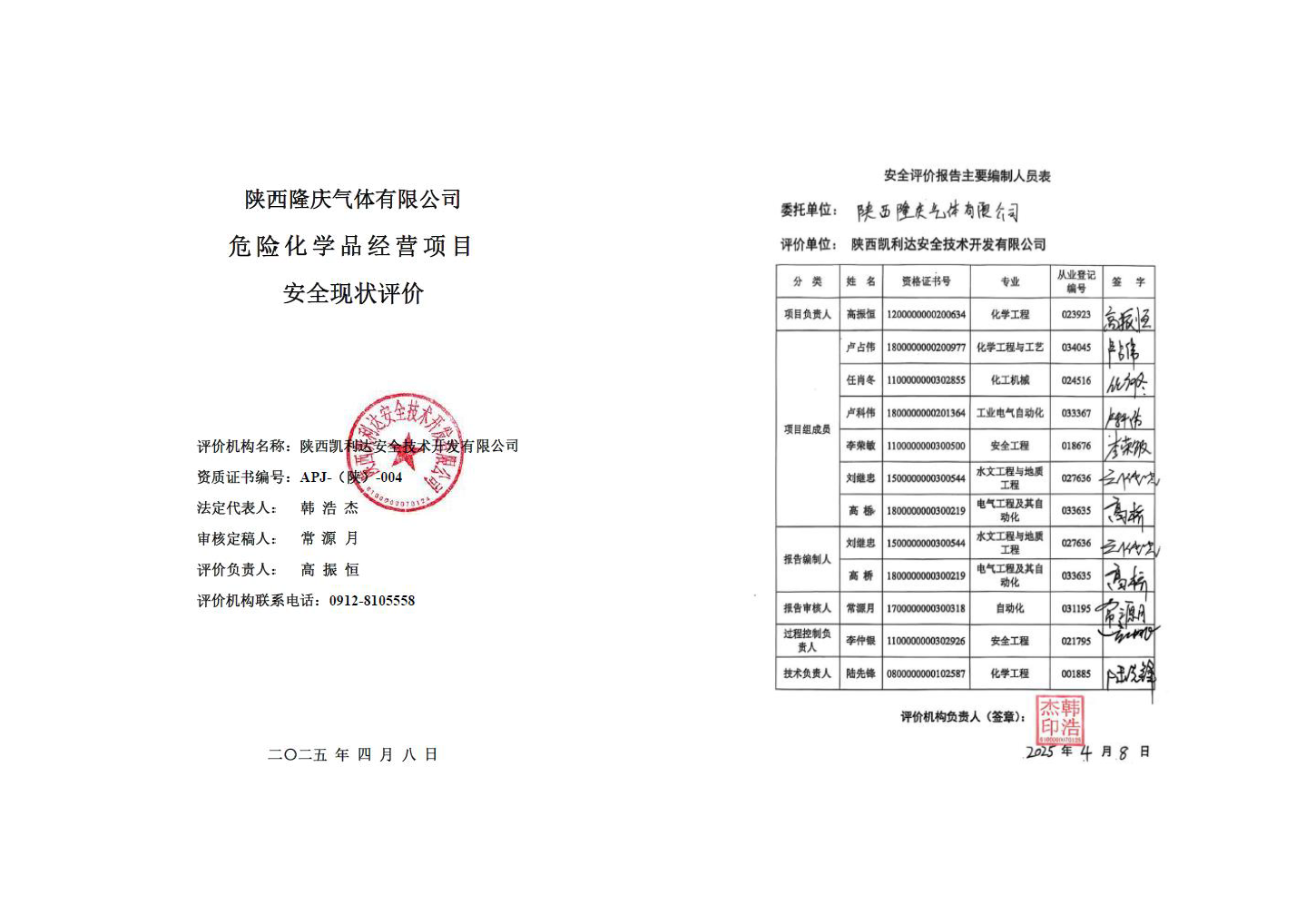 KLDAP[2025]-2.4陜西隆慶氣體有限公司危險化學品經營項目安全現狀評價
