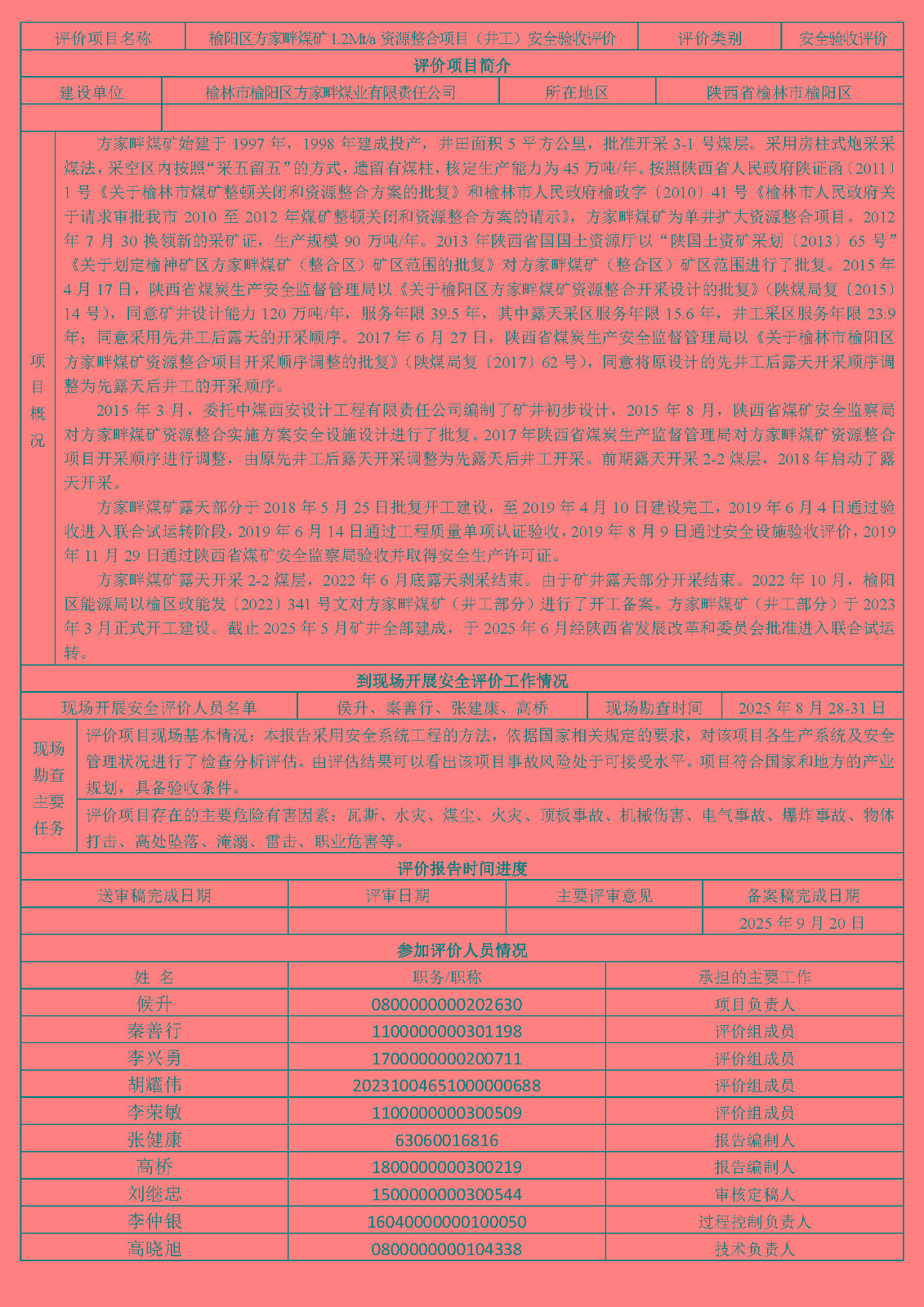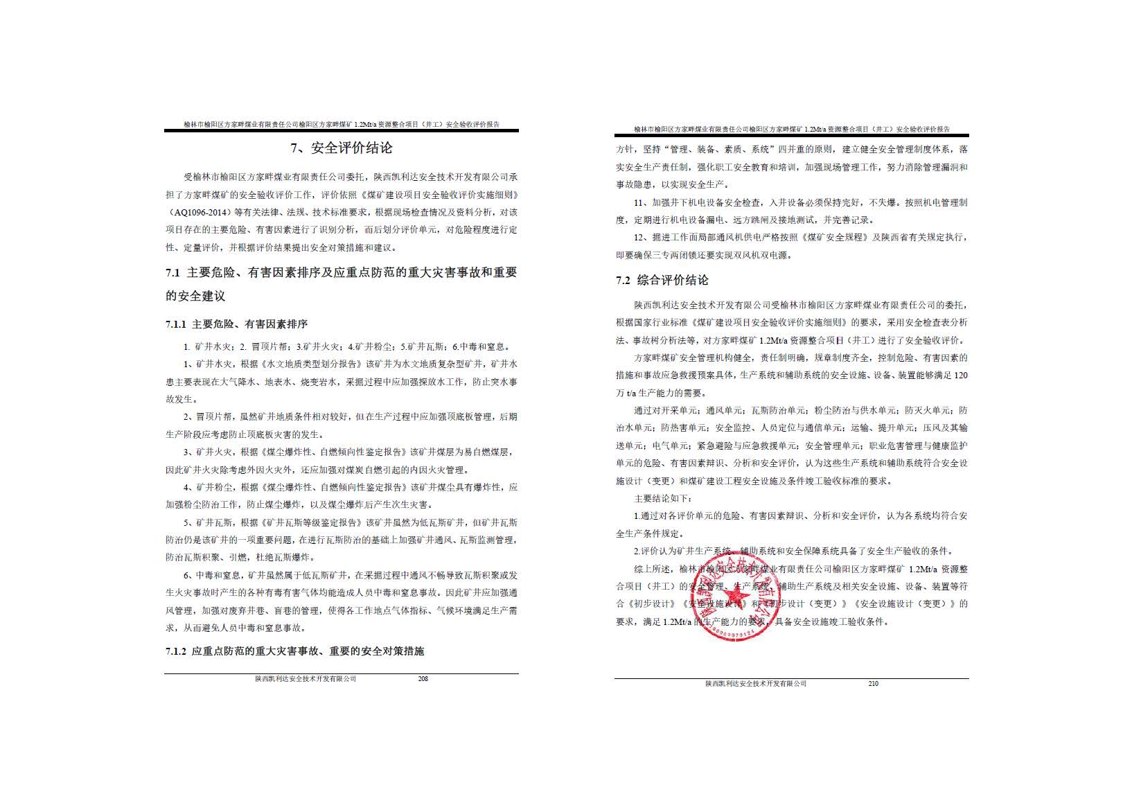 榆林市榆陽區(qū)方家畔煤業(yè)有限公司榆陽區(qū)方家畔煤礦煤炭資源整合項(xiàng)目(井工)安全驗(yàn)收評(píng)價(jià)