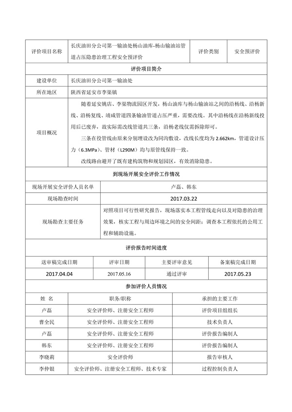 長慶油田分公司第一輸油處楊山油庫-楊山輸油站管道占壓隱患治理