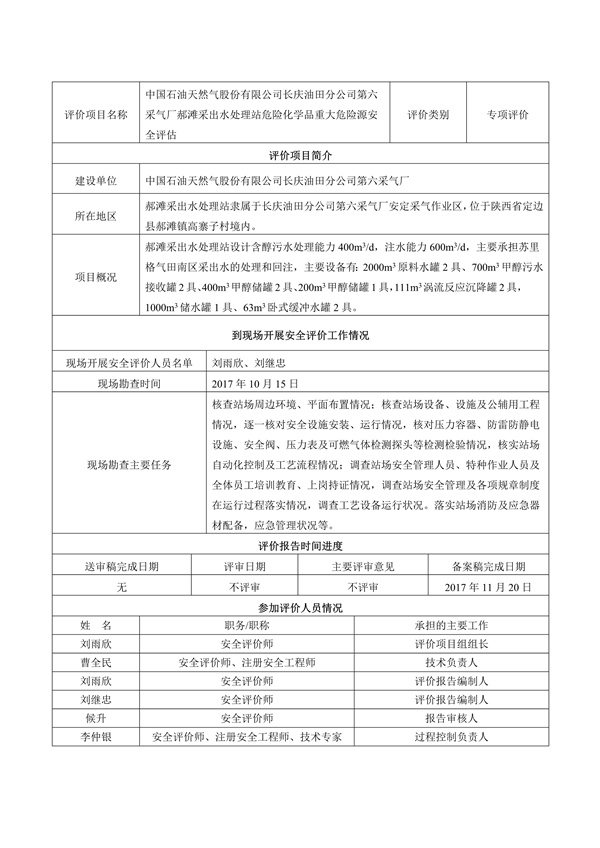 中國石油天然氣股份有限公司長慶油田分公司第六采氣廠郝灘采出水