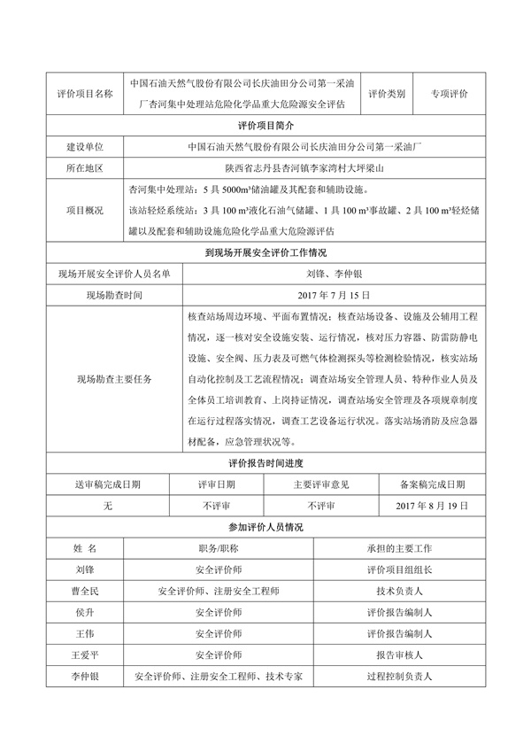 中國石油天然氣股份有限公司長慶油田分公司第一采油廠杏河集中處