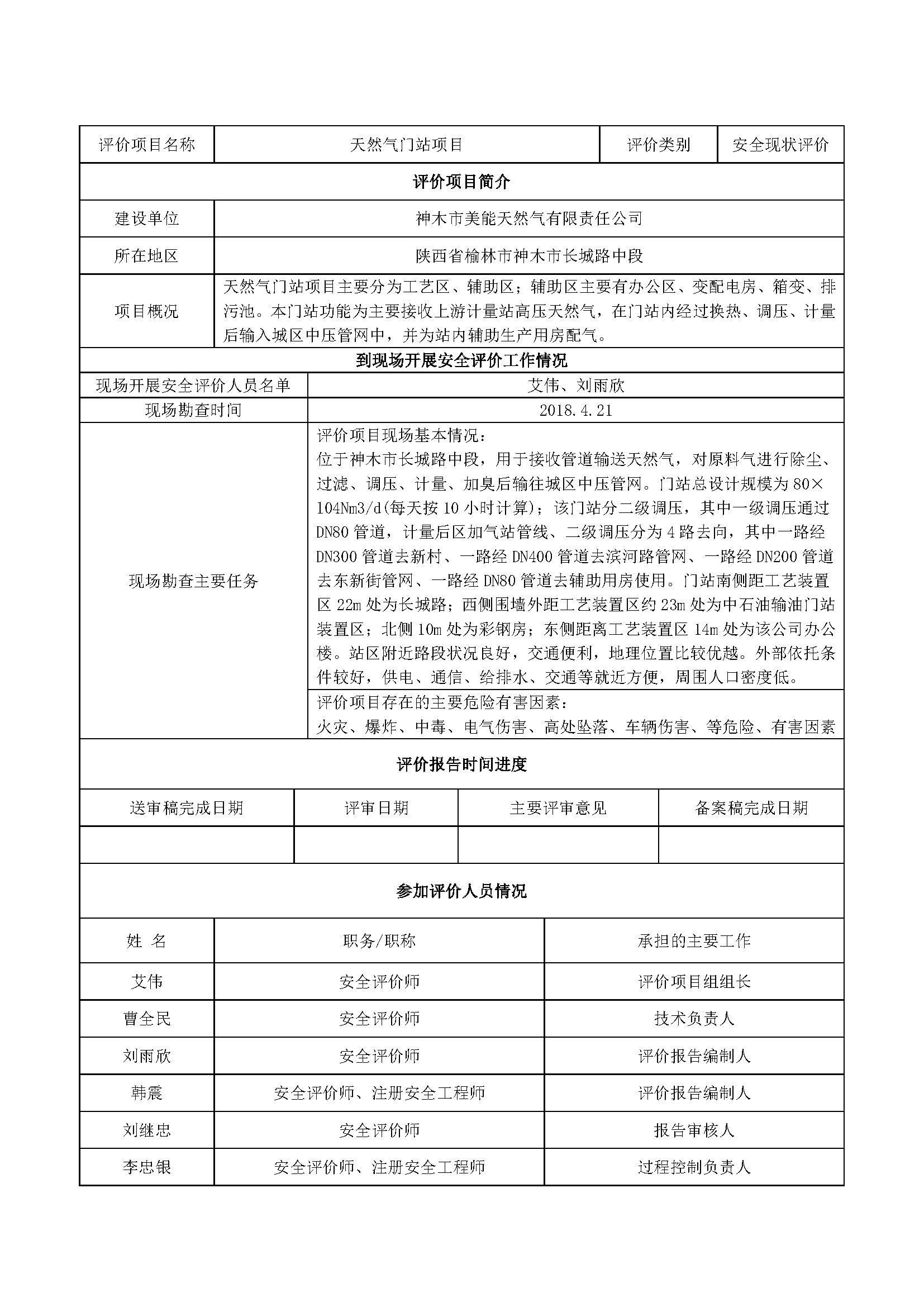 神木市美能天然氣有限責任公司天然氣門站項目安全現狀評價