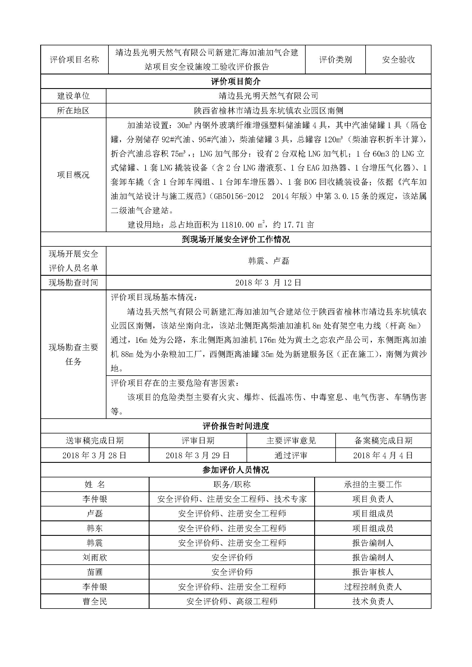 靖邊縣光明天然氣有限公司新建匯海加油加氣合建站項目安全設施竣工驗收評價