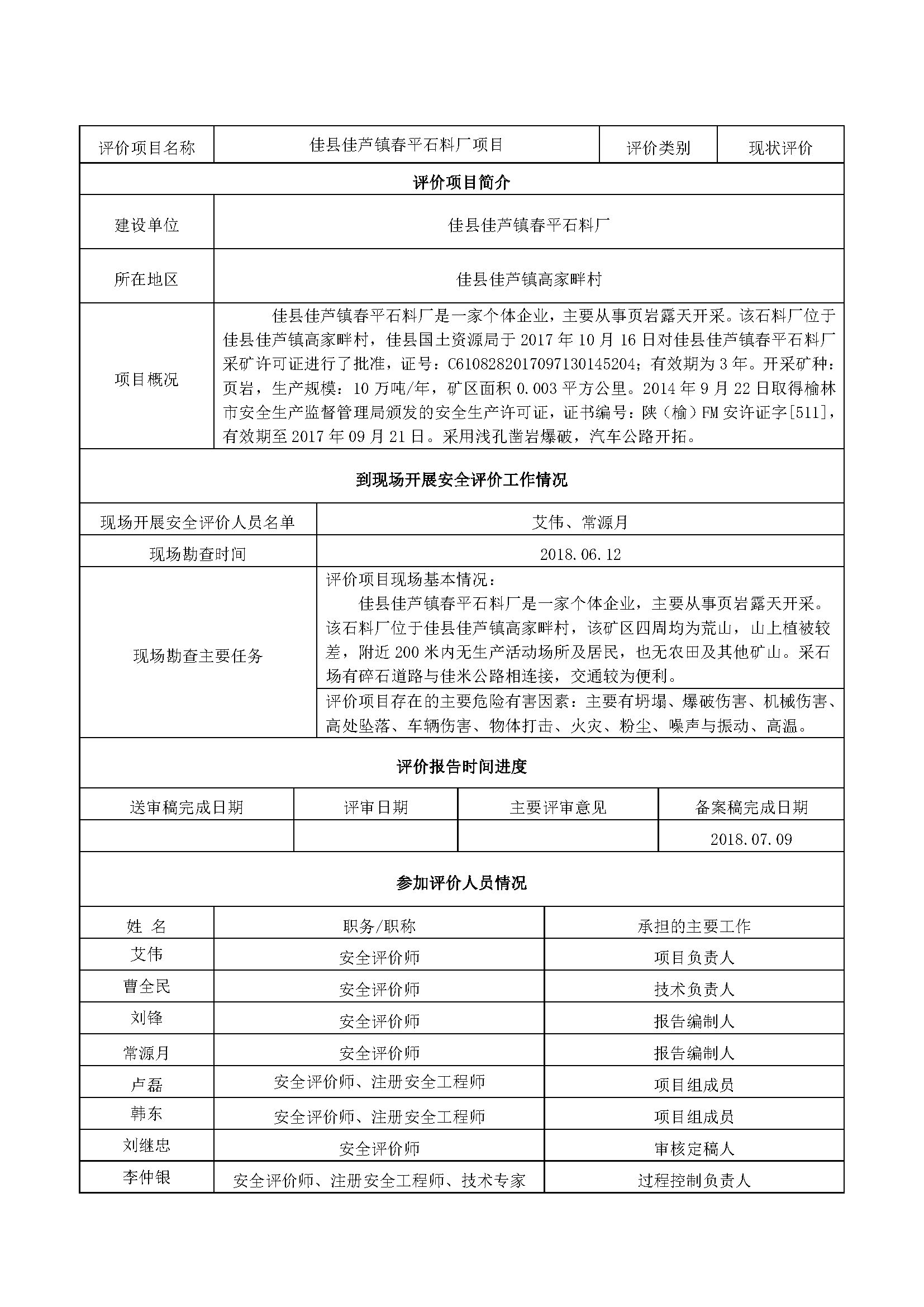 佳縣佳蘆鎮春平石料廠安全現狀評價