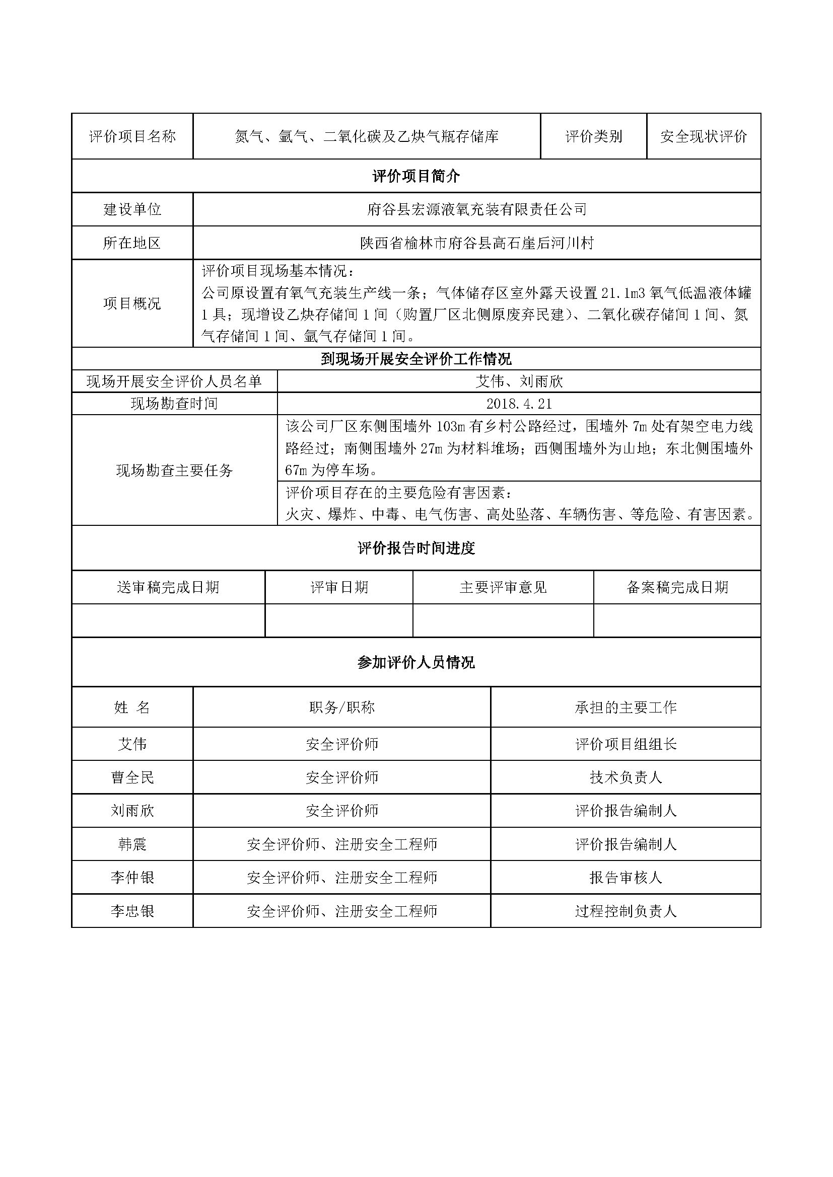 府谷縣宏源液氧充裝有限責任公司氮氣、氬氣、二氧化碳及乙炔氣瓶存儲庫安全現狀評價