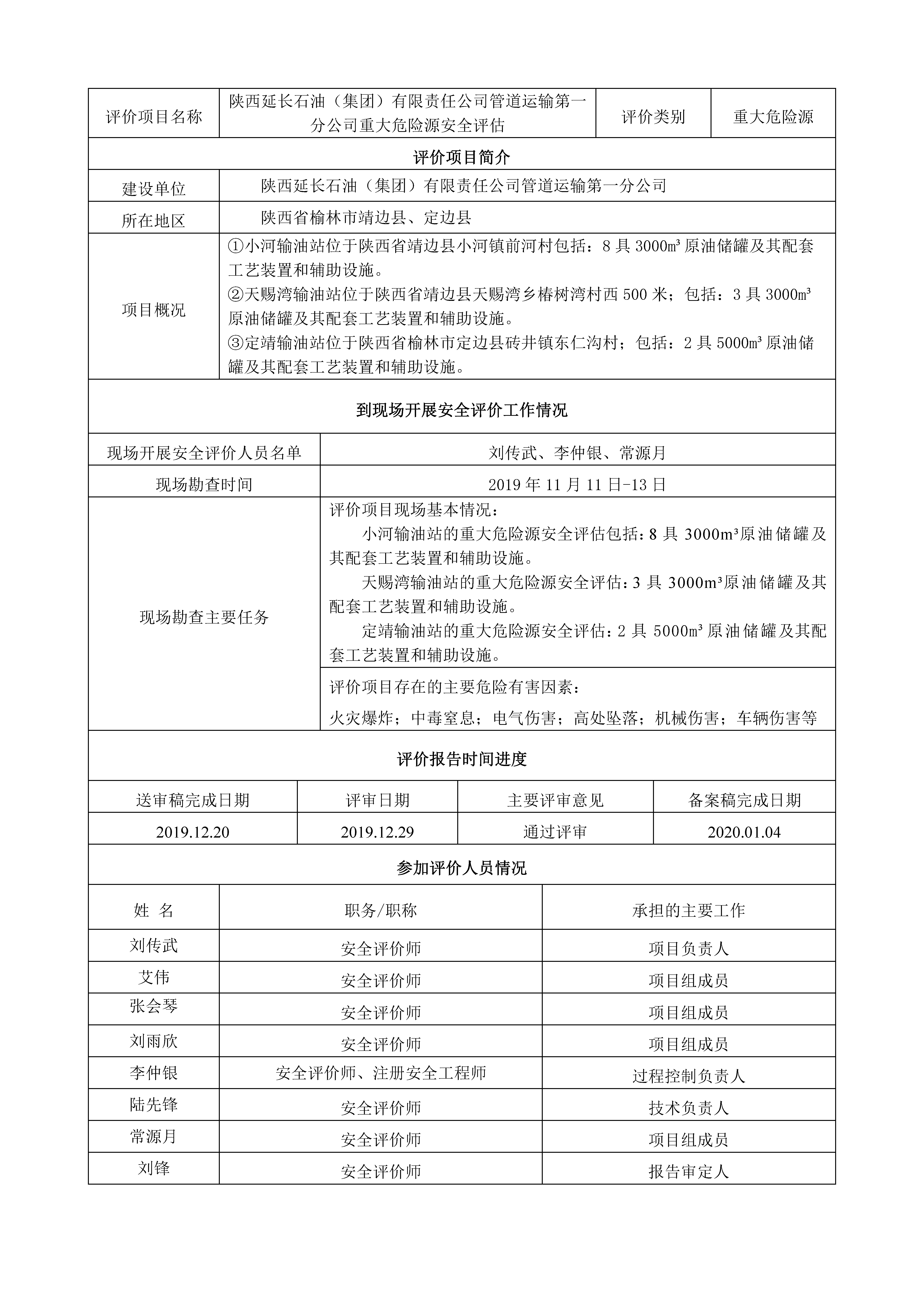KLDAP[2019]-?;?重-15 陜西延長石油(集團)有限責任公司管道運輸?shù)谝环止疚kU化學品重大危險源安全評估