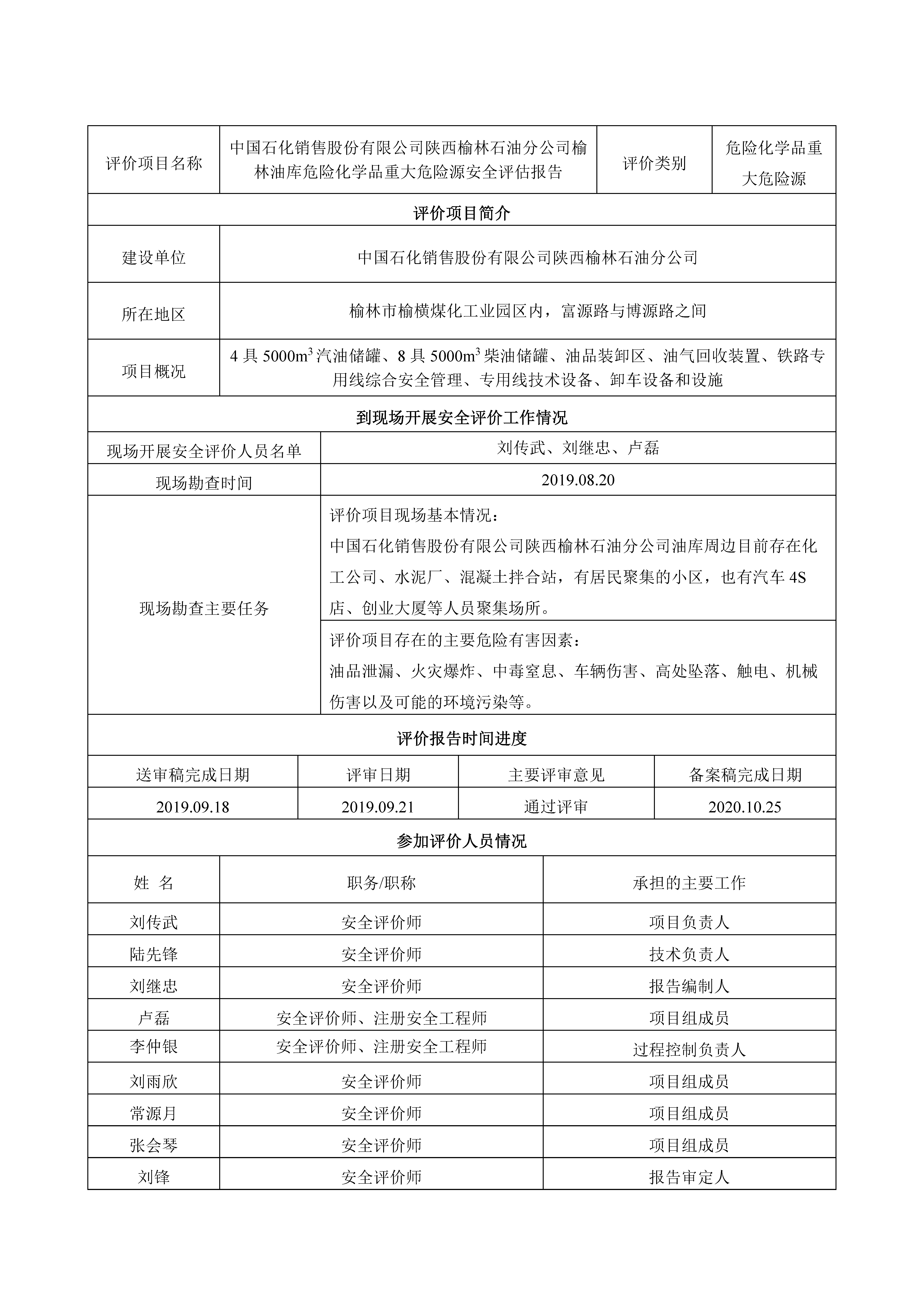 KLDAP[2019]-危化-重-11 中國石化銷售股份有限公司陜西榆林石油分公司重大危險(xiǎn)源評(píng)價(jià)