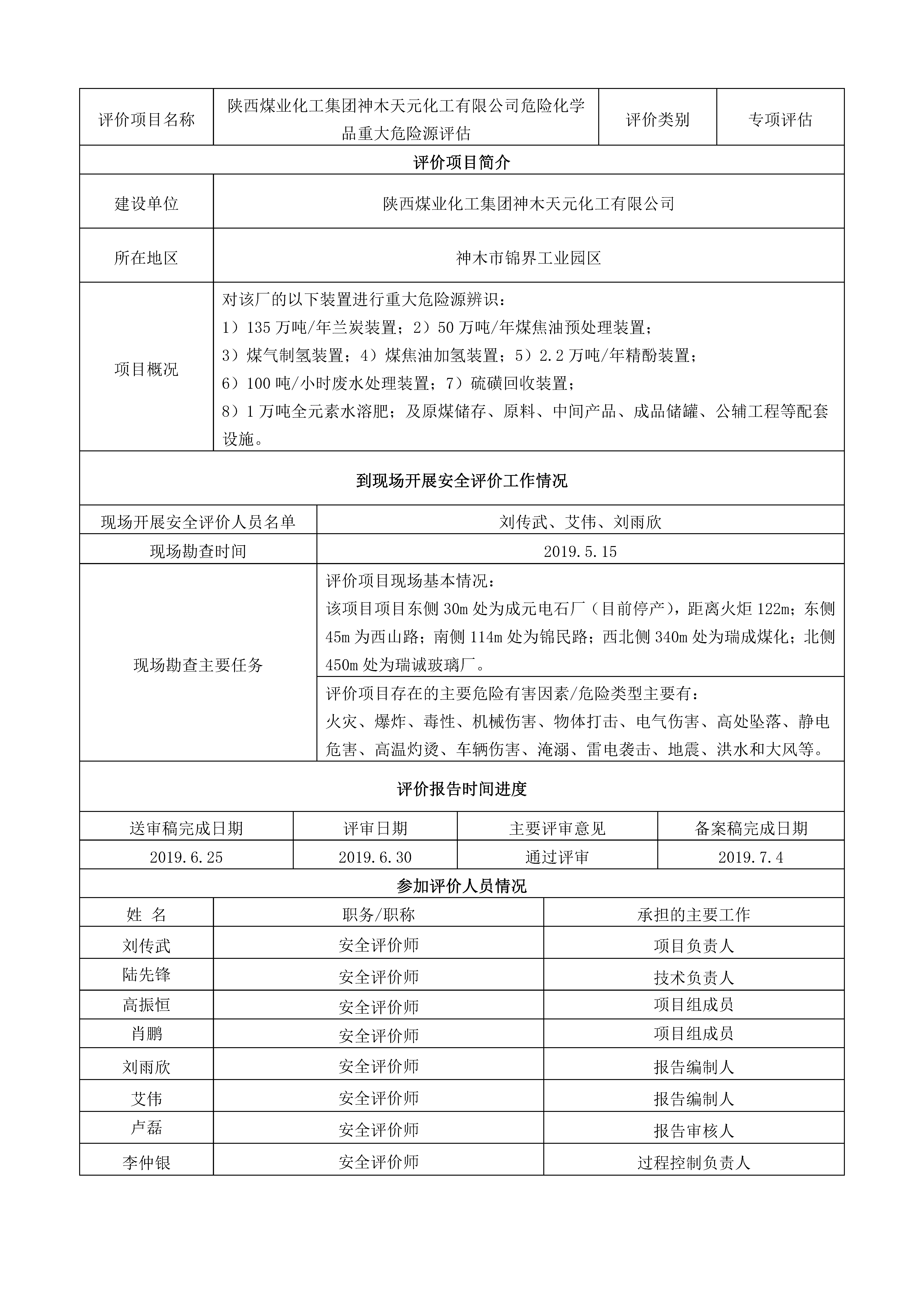 KLDAP[2019]-危化-重-4-陜西煤業化工集團神木天元化工有限公司危險化學品重大危險源評估項目