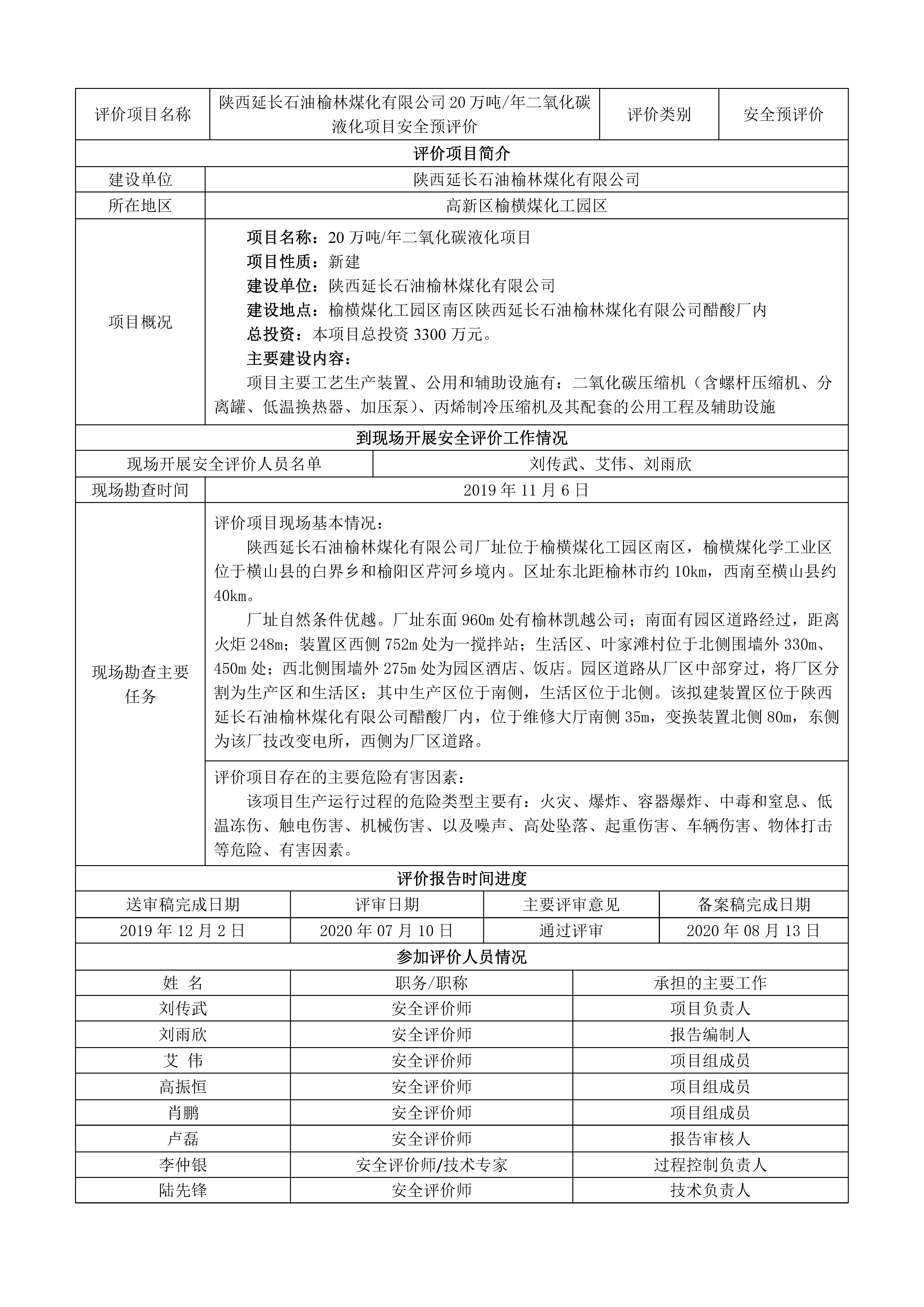 KLDAP[2019]-危化-預(yù)-10 延長(zhǎng)石油榆林煤化有限公司榆林煤化公司二氧化碳液化項(xiàng)目預(yù)評(píng)價(jià)