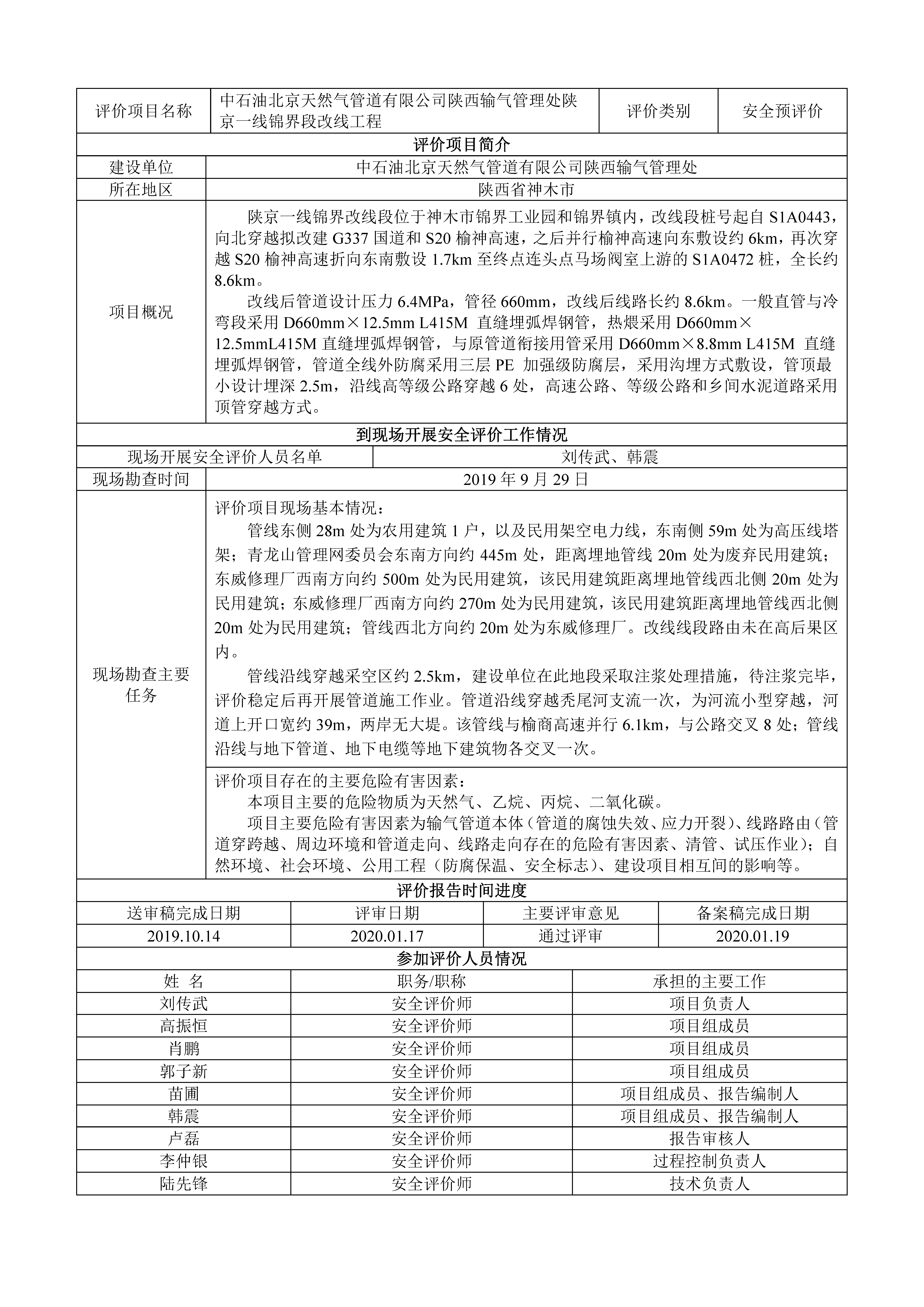 KLDAP[2019]-危化-預-9 中石油北京天然氣管道有限公司陜西輸氣管理處陜京一線神木市錦界鎮(zhèn)遷改工程安全預評價報告