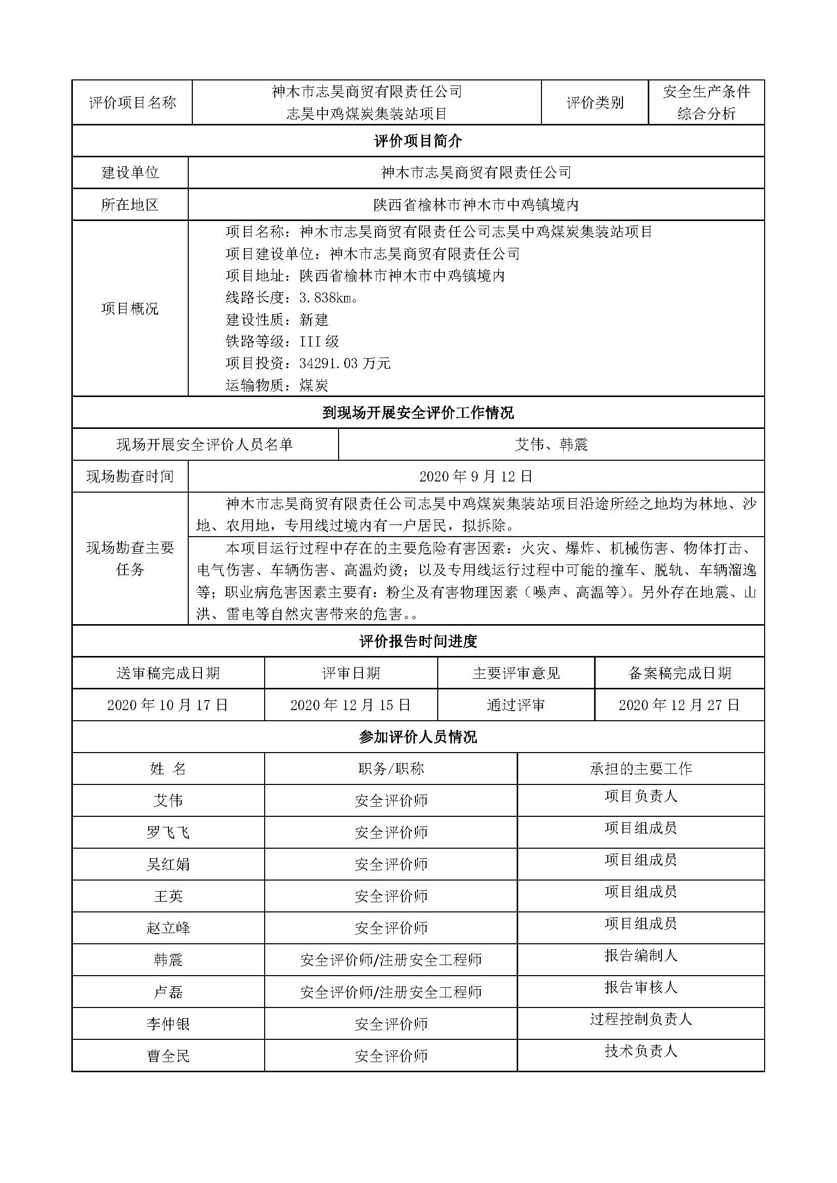 KLDAP[2020]-工貿-預-6 神木市志昊商貿有限責任公司志昊中雞煤炭集裝站項目安全生產條件綜合分析
