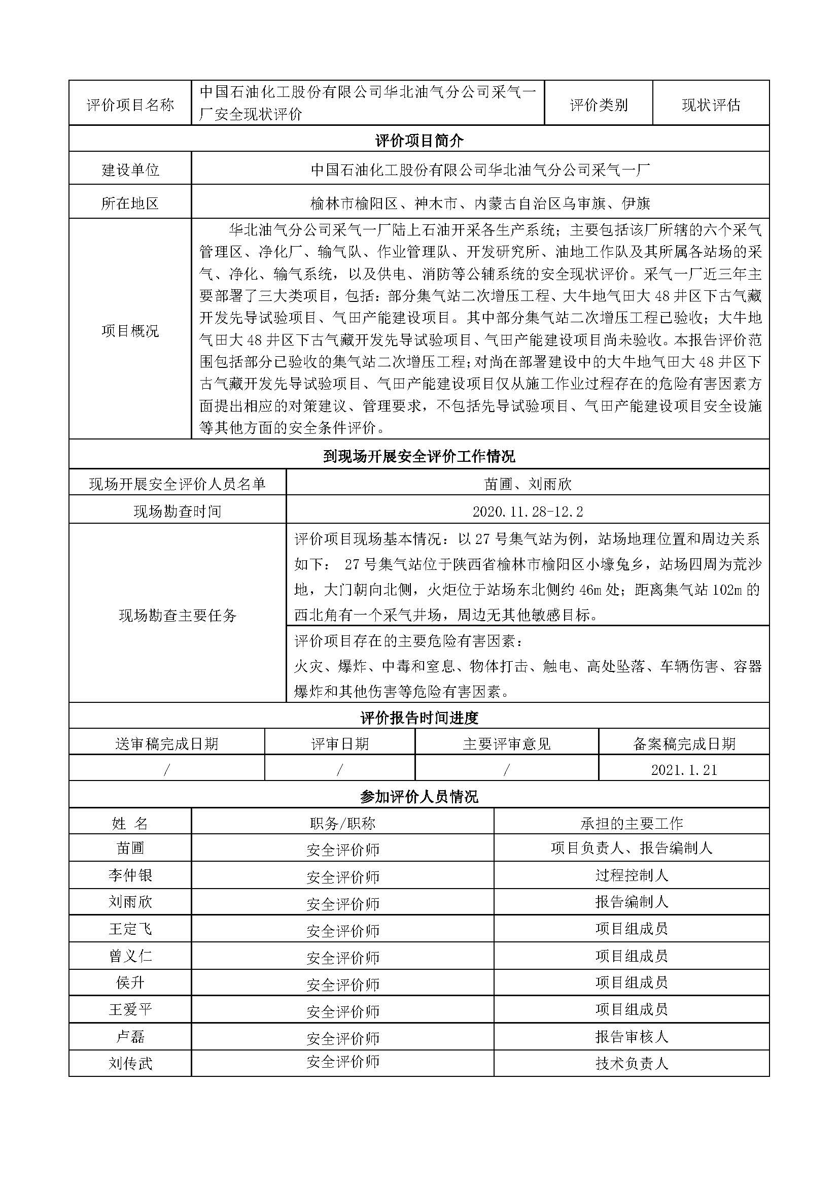 KLDAP[2020]-非煤-現(xiàn)-2 中國石油化工股份有限公司華北油氣分公司采氣一廠安全現(xiàn)狀評價