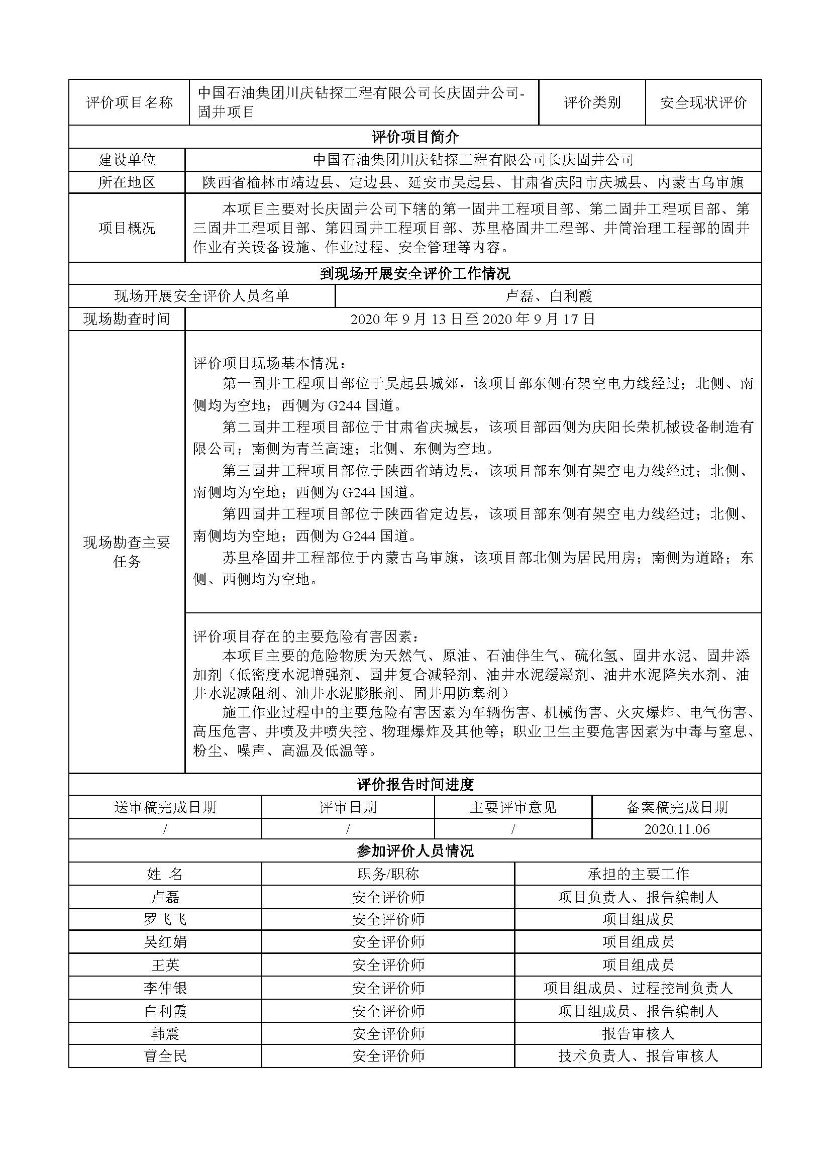 KLDAP[2020]-非煤-現(xiàn)-1 中國石油集團川慶鉆探工程有限公司長慶固井公司-固井項目安全現(xiàn)狀評價