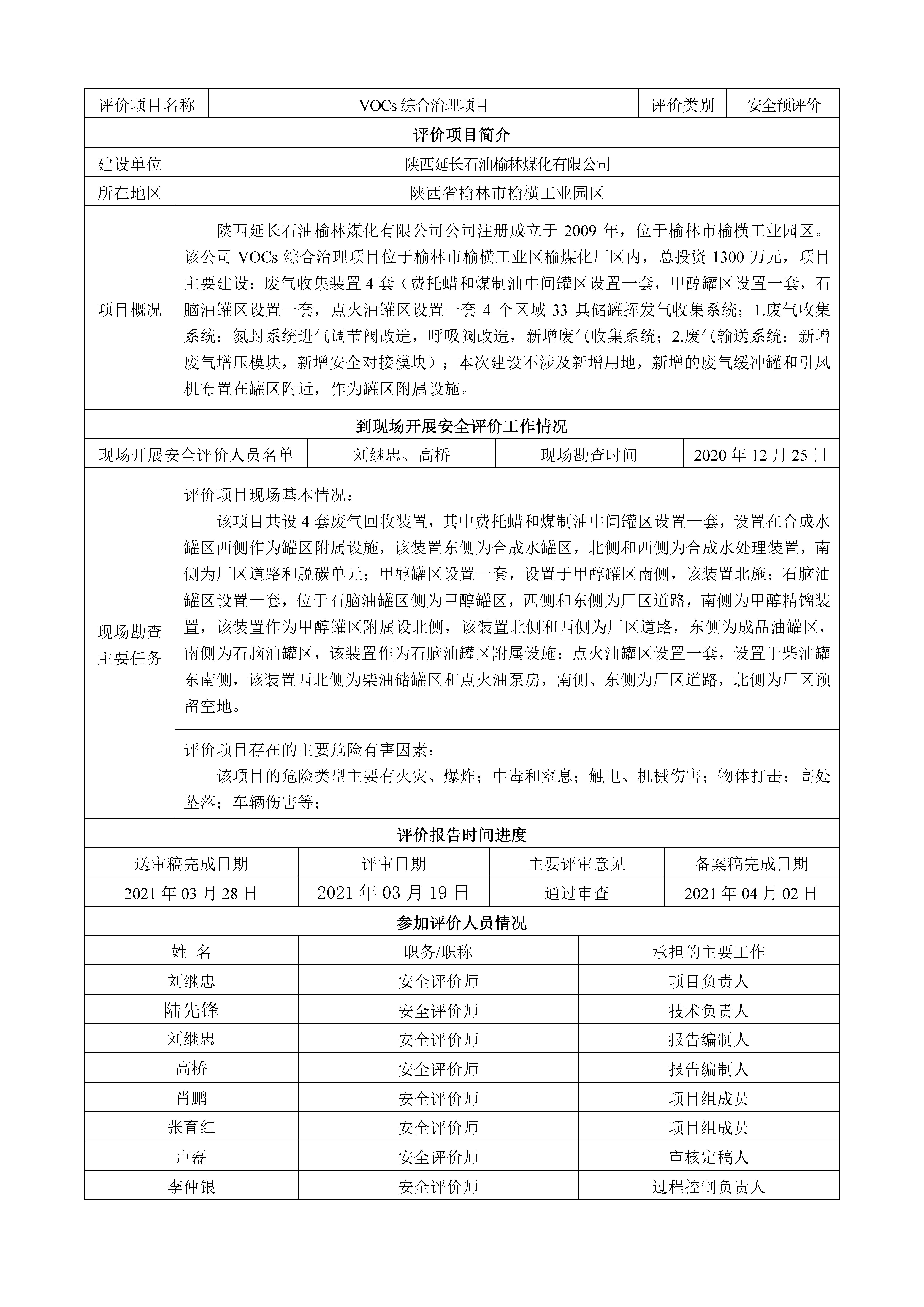 KLDAP[2021]-危化-預(yù)-1 陜西延長(zhǎng)石油榆林煤化有限公司VOCs綜合治理項(xiàng)目安全預(yù)評(píng)價(jià)