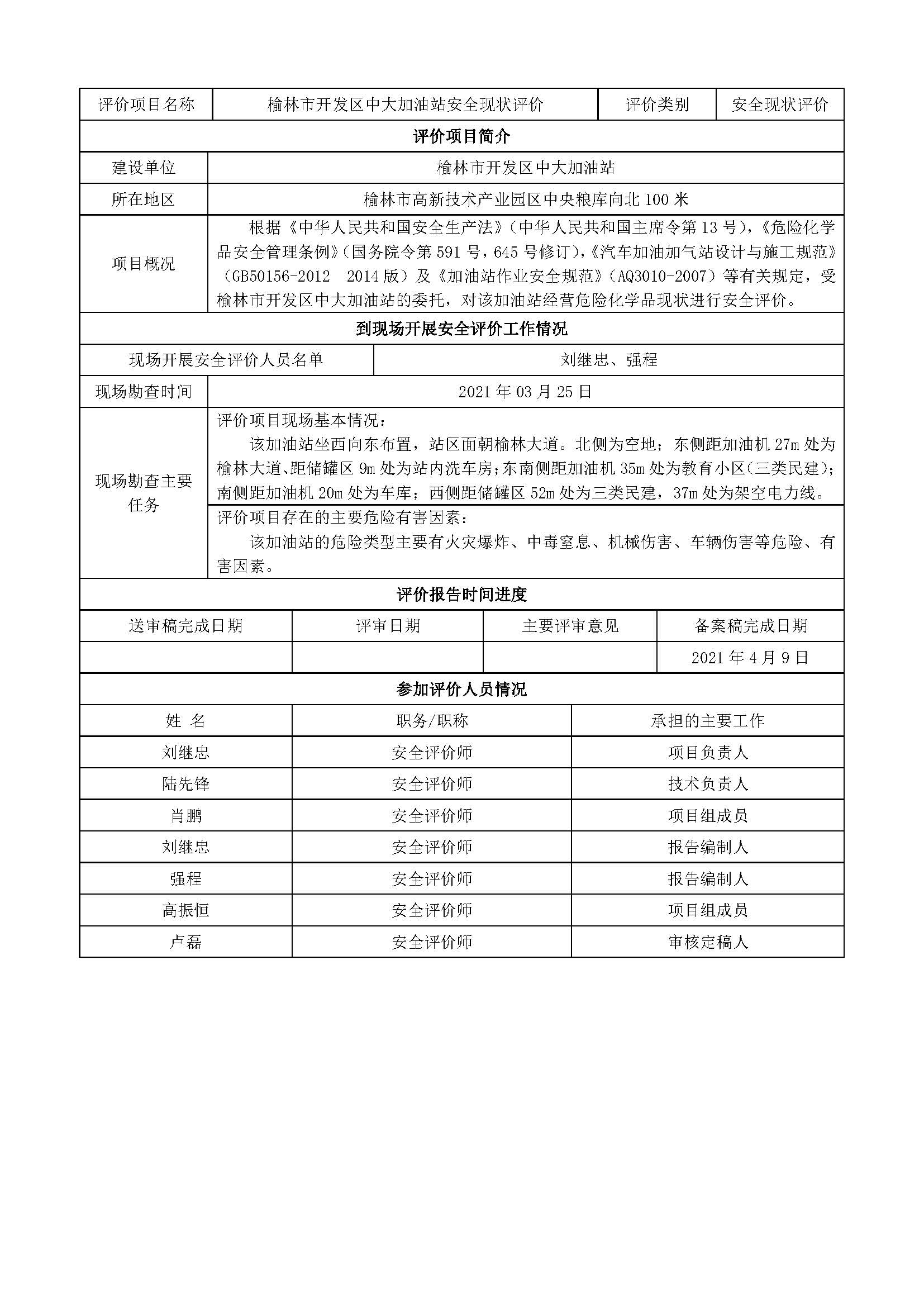 KLDAP[2021]-危化-現-5 榆林市開發區中大加油站安全現狀評價