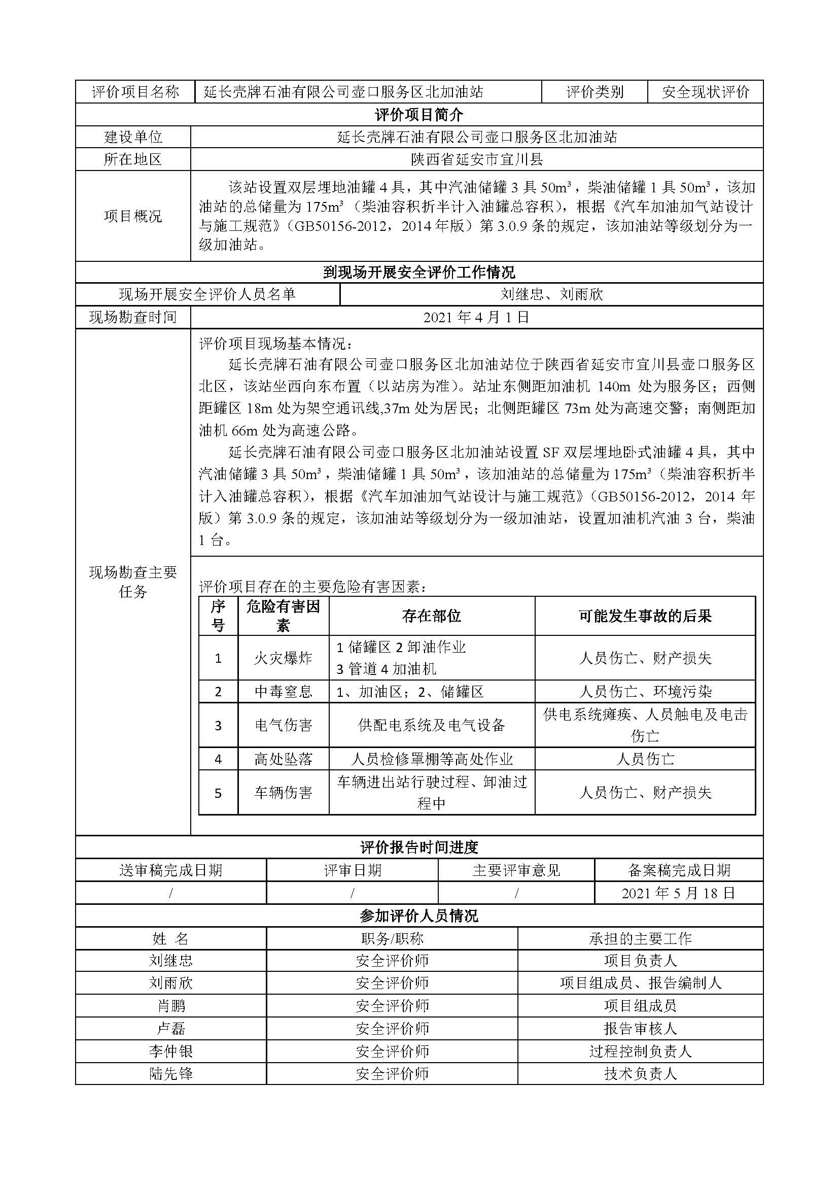 KLDAP[2021]-危化-現-3 延長殼牌石油有限公司壺口服務區北加油站安全現狀評價