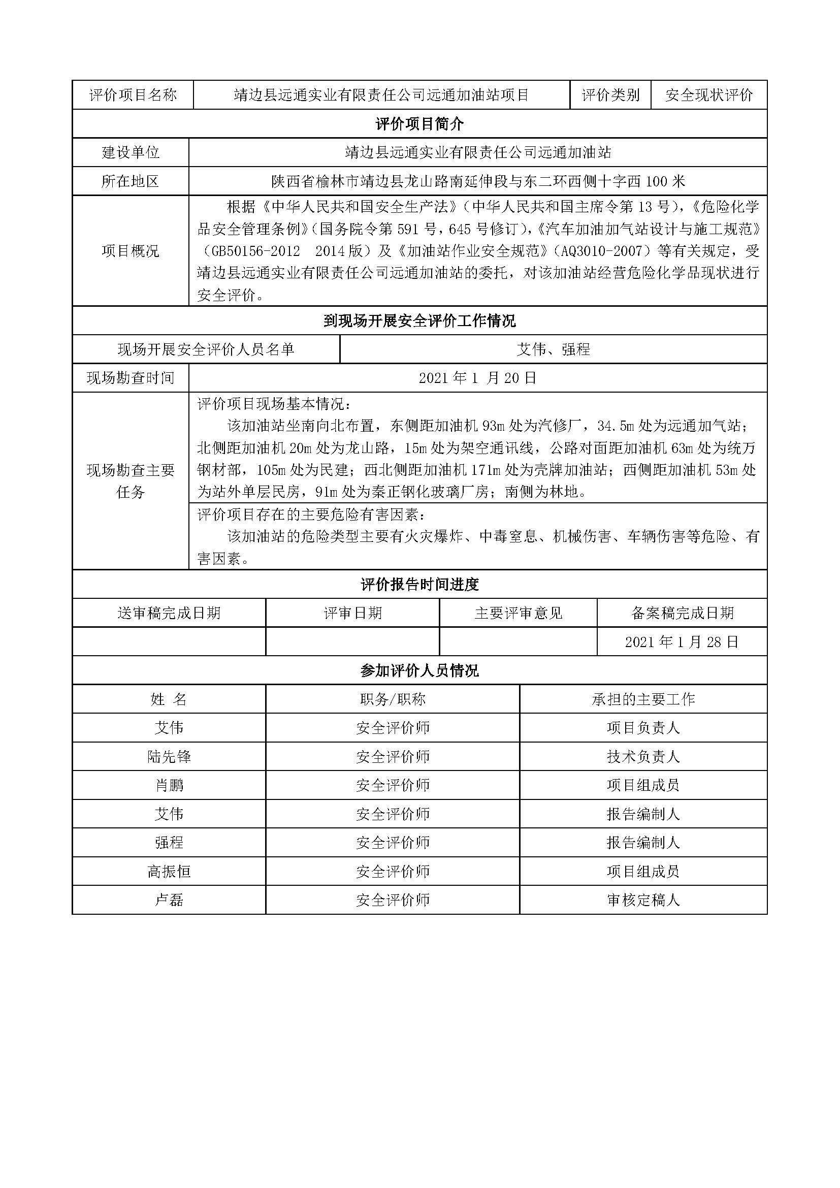 KLDAP[2021]-危化-現-1 靖邊縣遠通實業有限公司遠通加油站安全現狀評價
