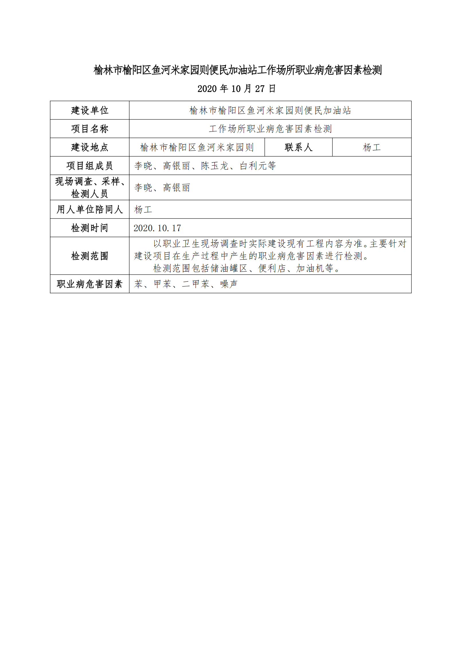 榆林市榆陽區魚河米家園則便民加油站工作場所職業病危害因素檢測