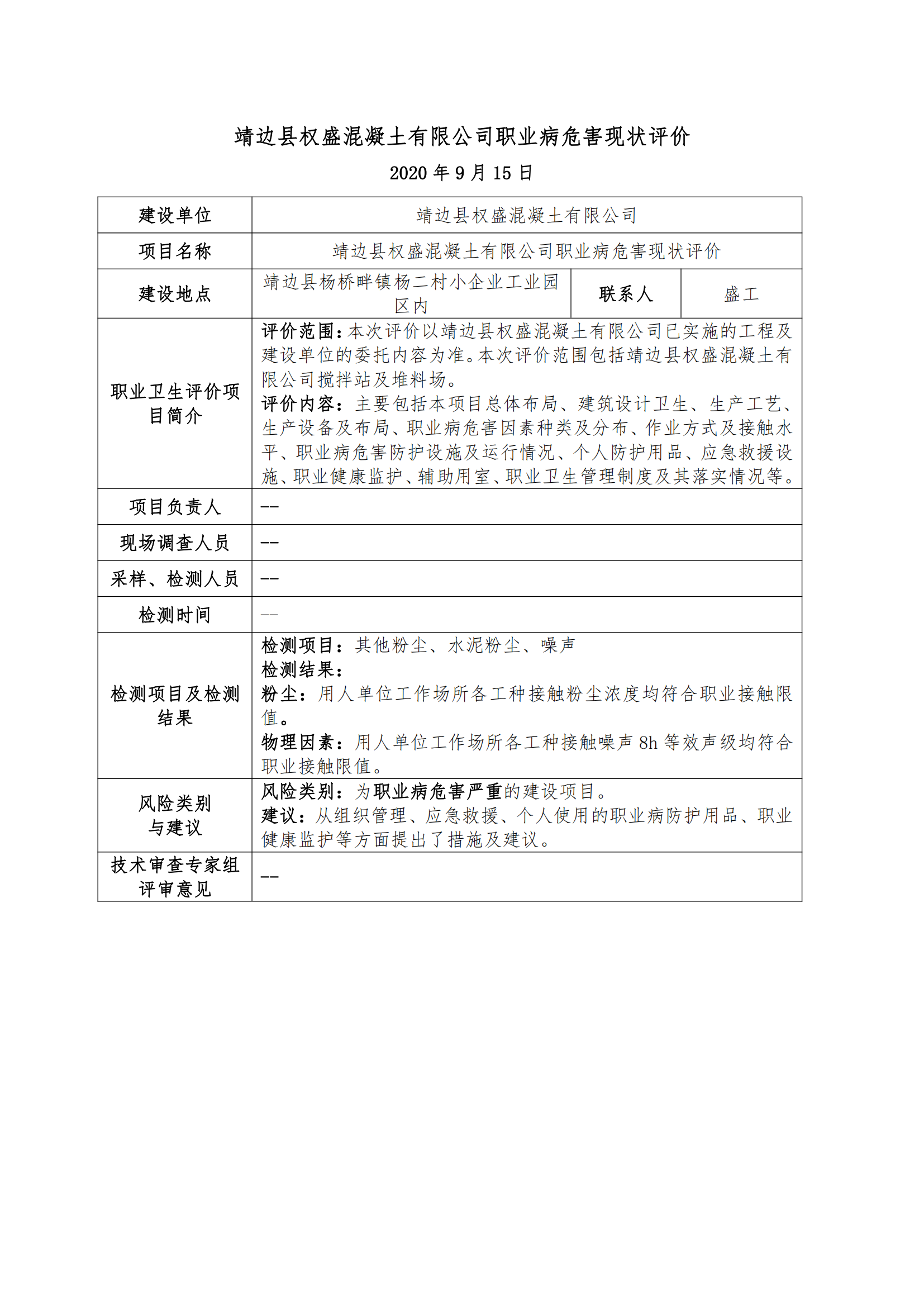 靖邊縣權(quán)盛混凝土有限公司職業(yè)病危害現(xiàn)狀評價