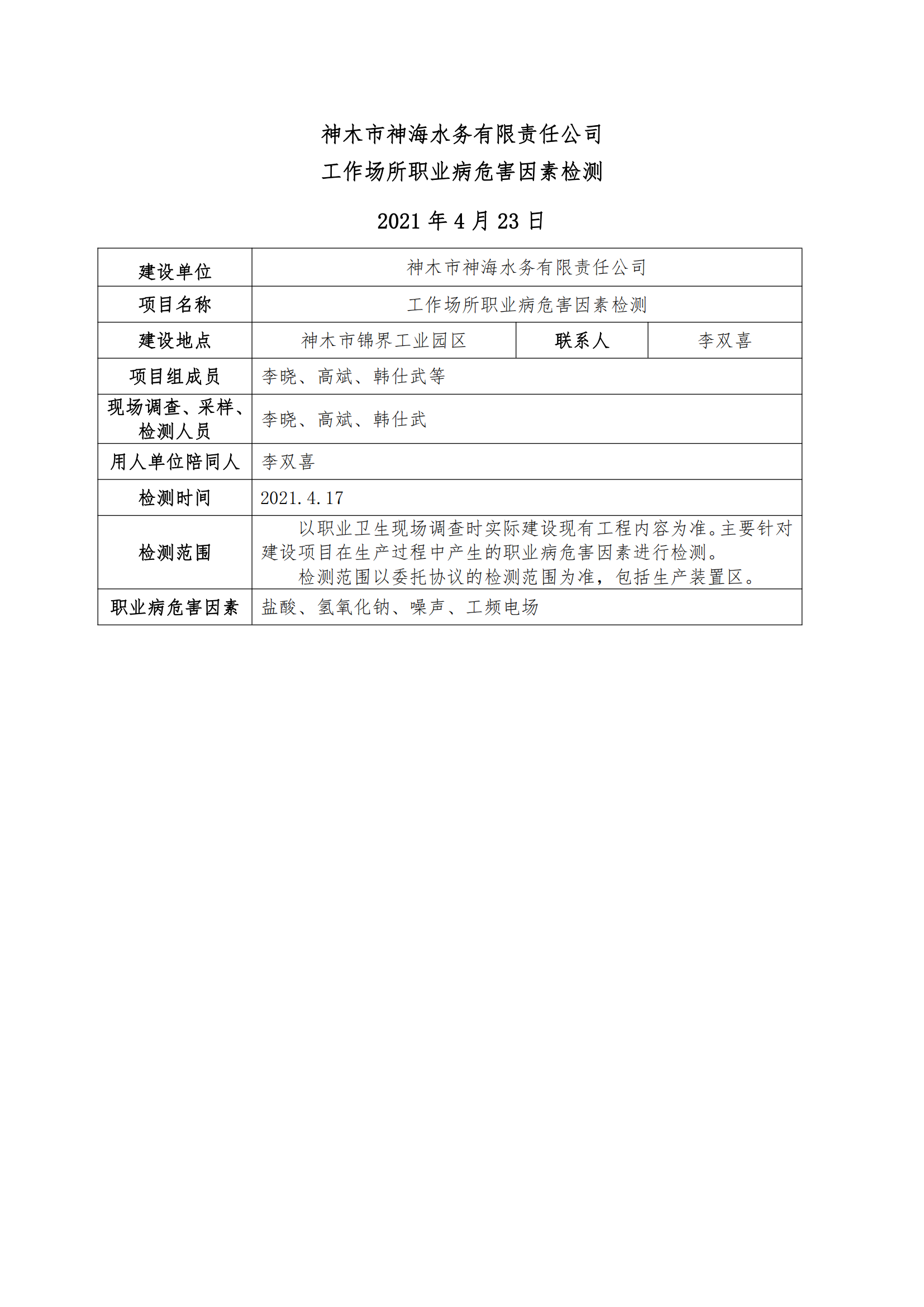 神木市神海水務(wù)有限責(zé)任公司工作場所職業(yè)病危害因素檢測