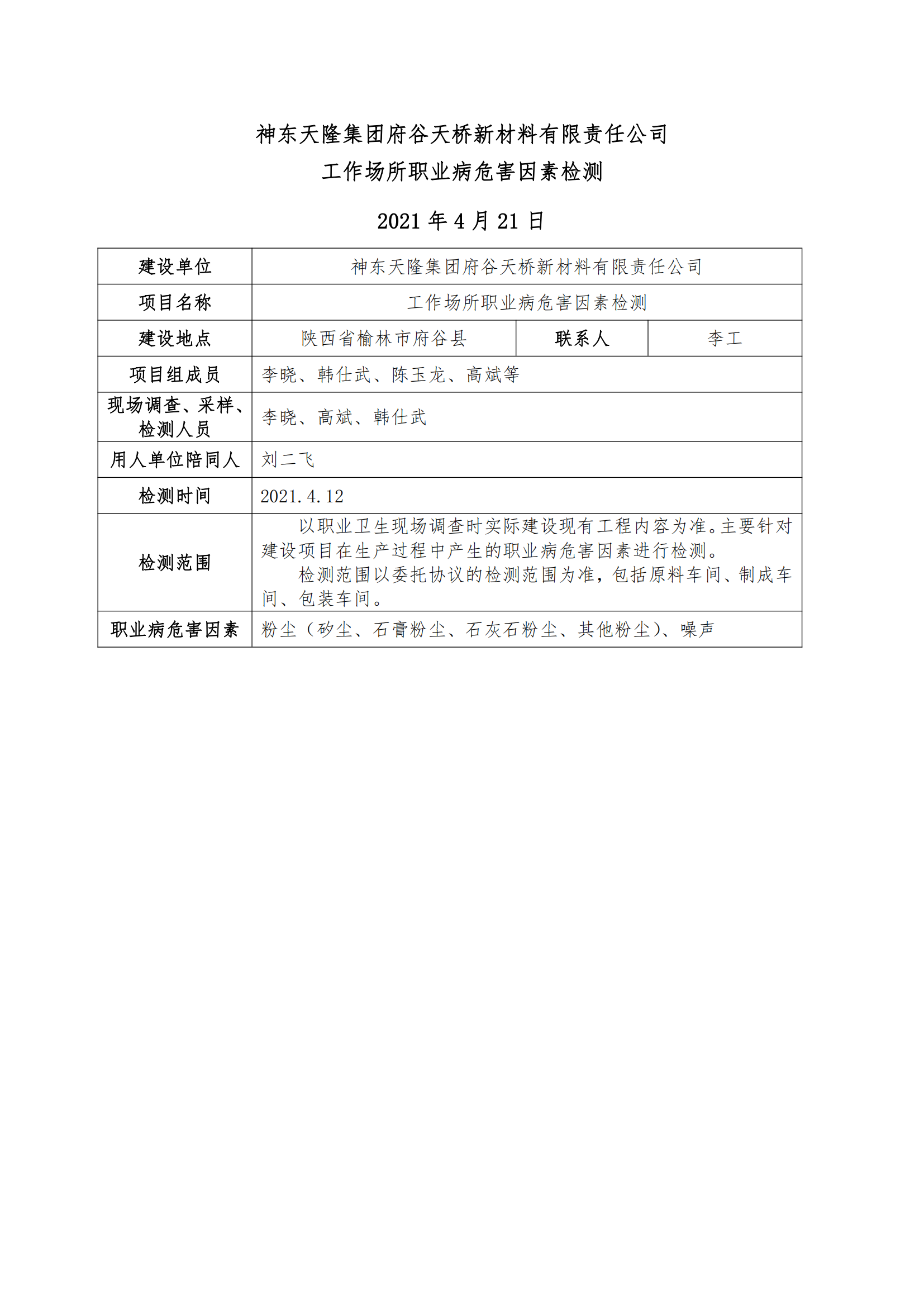 神東天隆集團府谷天橋新材料有限責任公司工作場所職業病危害因素檢測