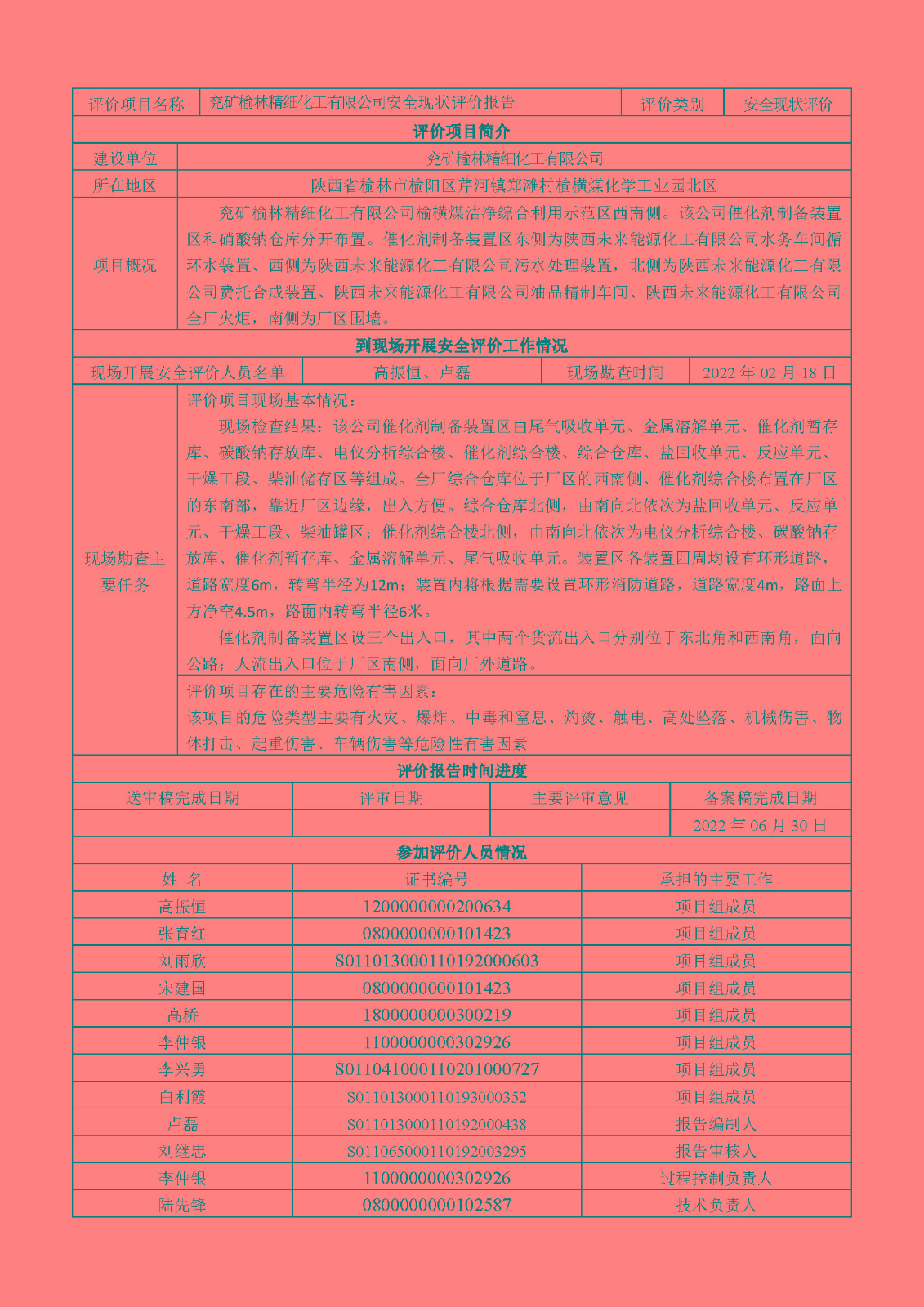 KLDAP[2022]-4.2 兗礦榆林精細化工有限公司安全現狀評價