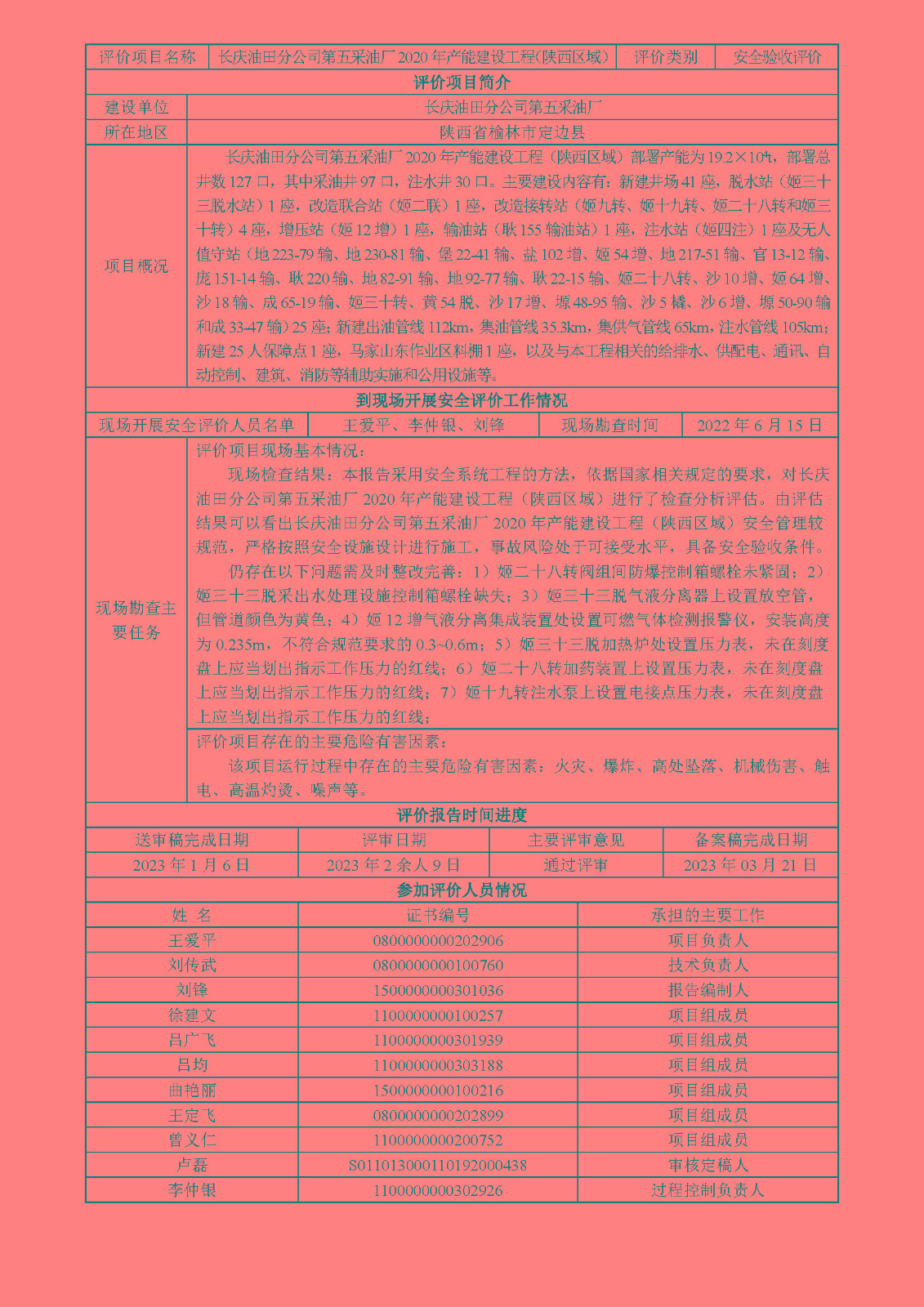 KLDAP[2022]-4.7 長慶油田分公司第五采油廠2020年產能建設工程(陜西區域)安全驗收評價