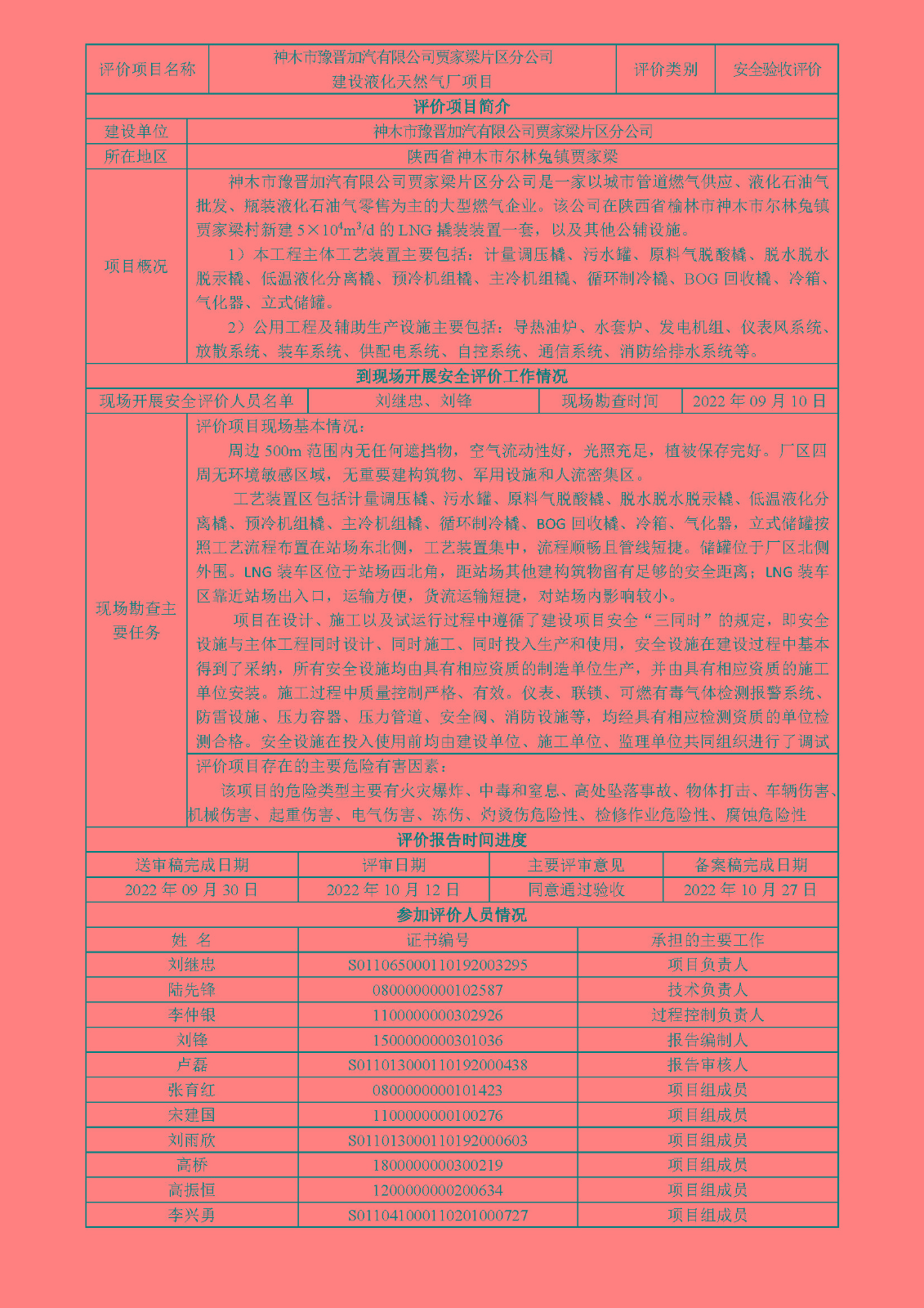 KLDAP[2022]-4.12 神木市豫晉加汽有限公司賈家梁片區分公司建設液化天然氣廠項目安全驗收評價