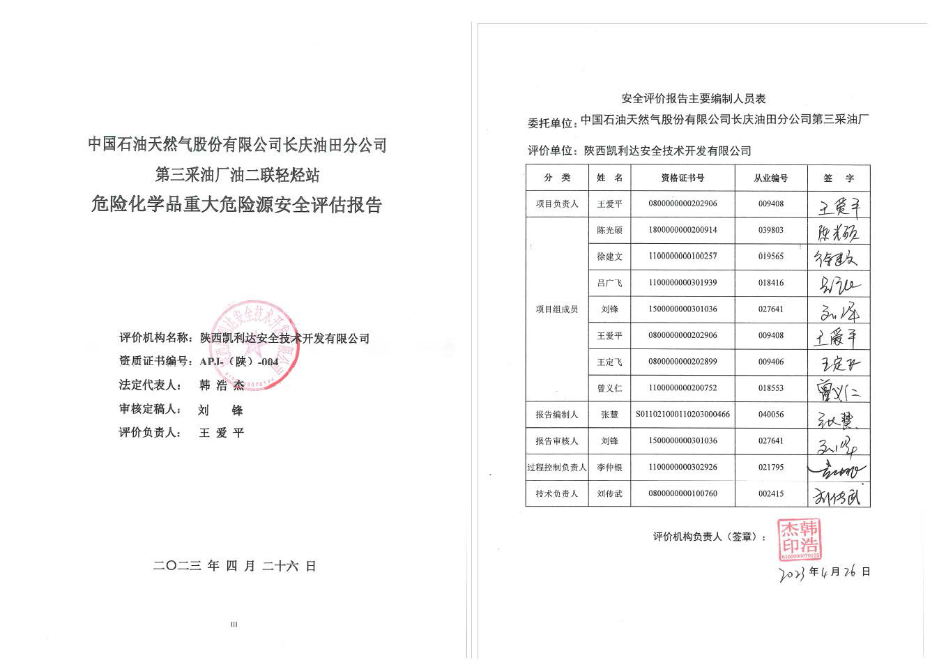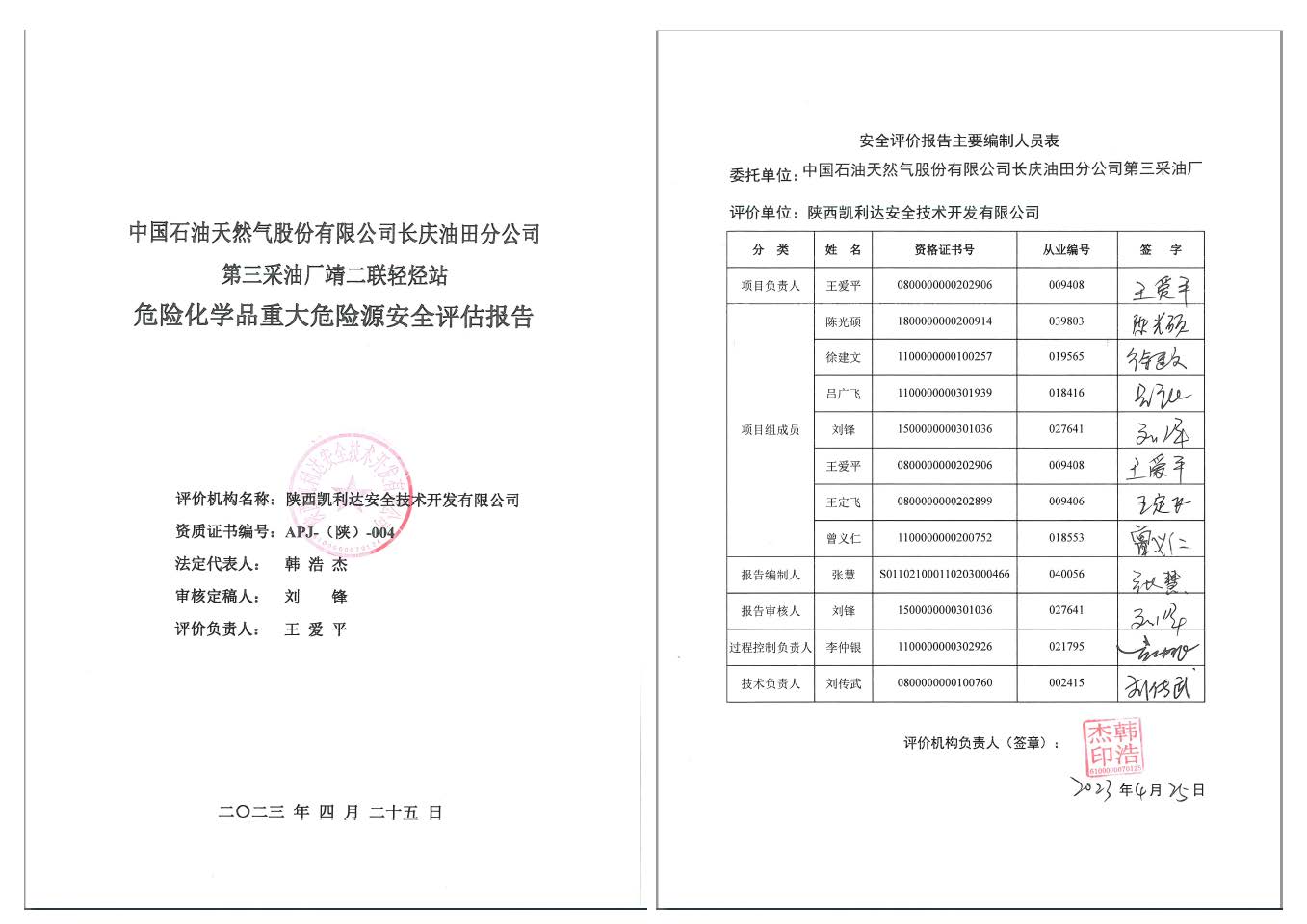 KLDAP[2023]-4.5 長慶油田分公司第三采油廠2023年重大危險源評估