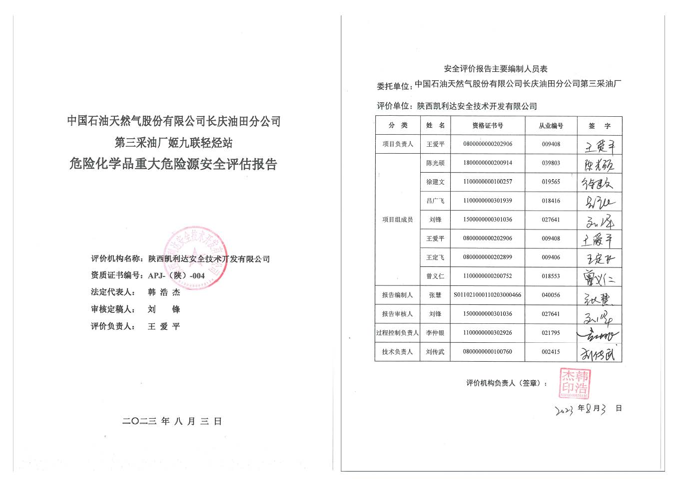 KLDAP[2023]-4.4 長慶油田分公司第五采油廠姬一聯和姬五聯輕烴站重大危險源評估