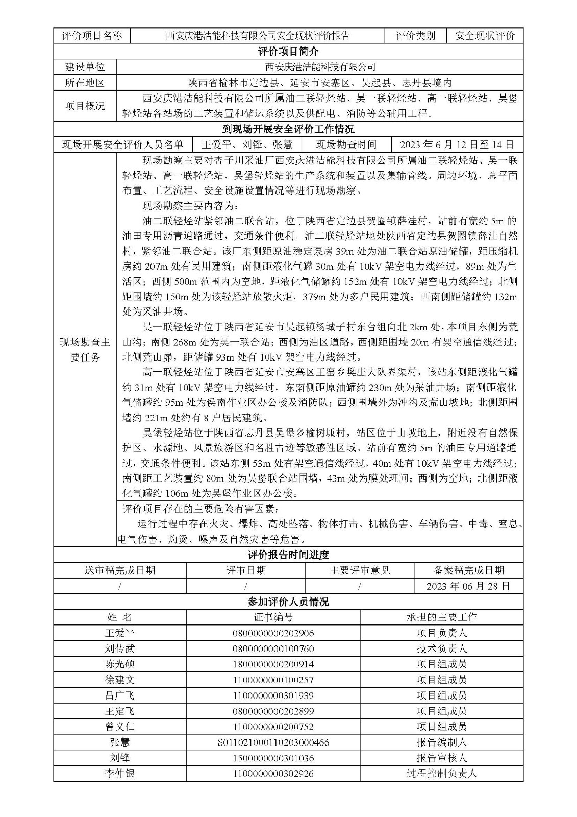 KLDAP[2023]-4.6 延長油田股份有限公司杏子川采油廠安全現狀評價