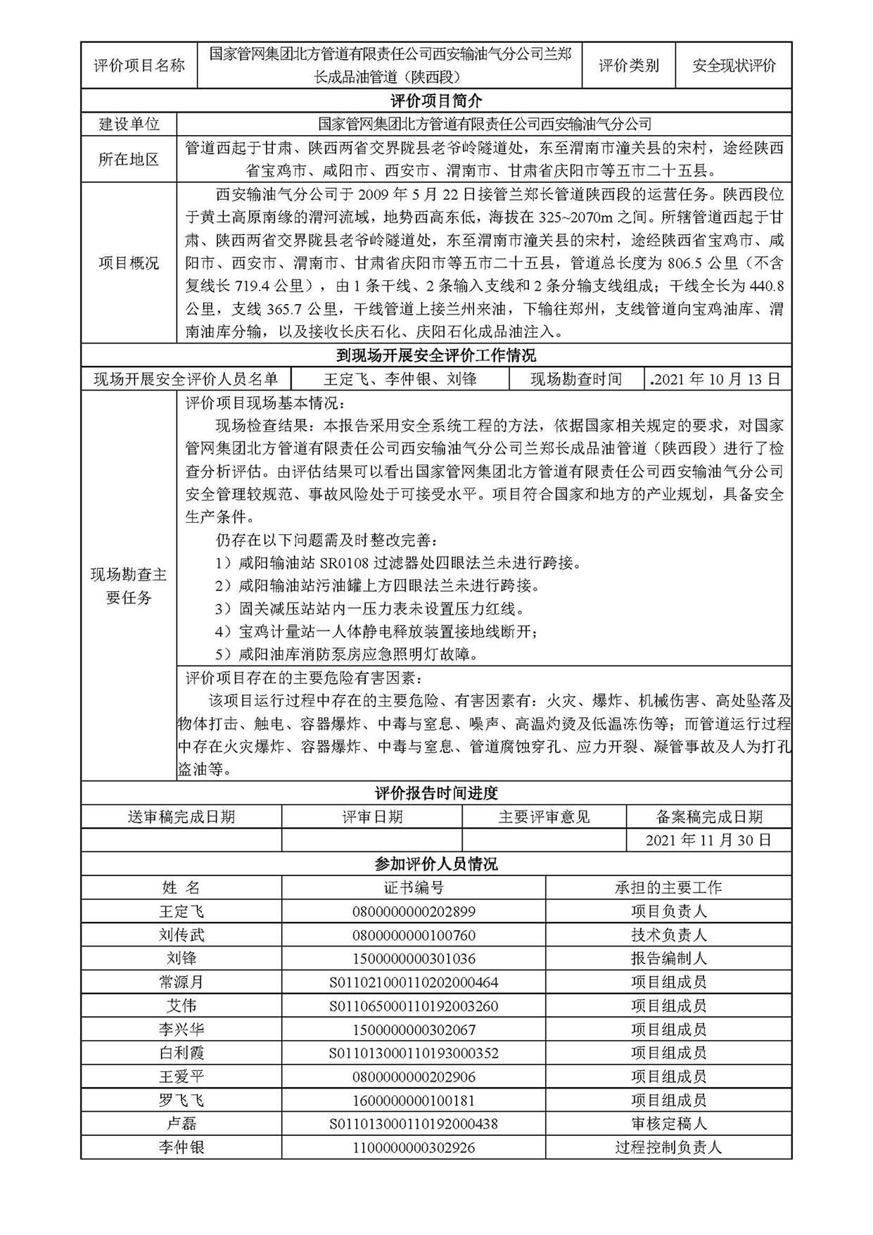 KLDAP[2021]-(現(xiàn))-16 國(guó)家管網(wǎng)集團(tuán)北方管道有限責(zé)任公司西安輸油氣分公司蘭鄭長(zhǎng)成品油管道(陜西段)安全現(xiàn)狀評(píng)價(jià)