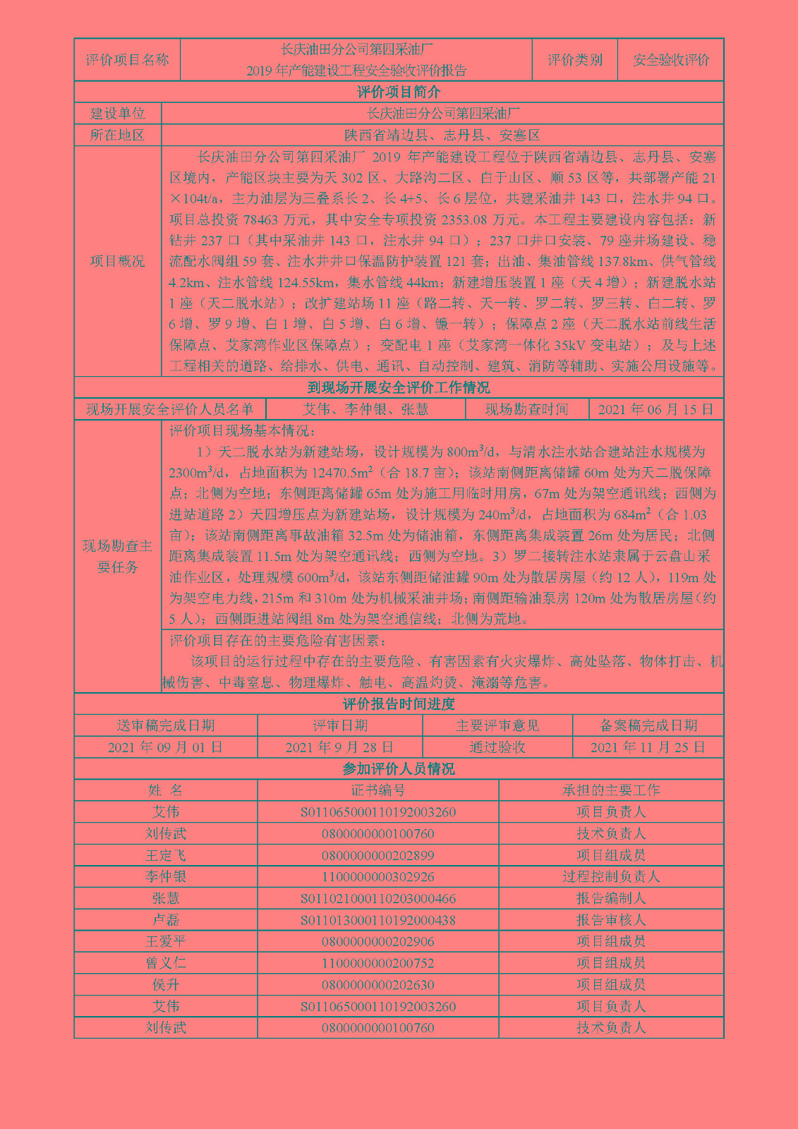 KLDAP[2021]-(驗)-20 長慶油田分公司第四采油廠2019年產能建設工程安全驗收評價