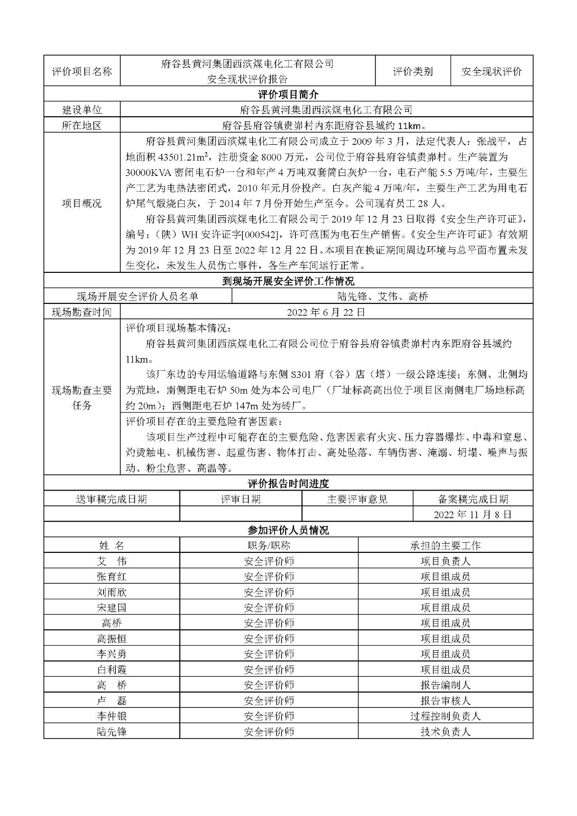 KLDAP[2022]-3.6 府谷縣黃河集團西濱煤電化工有限公司安全現狀評價