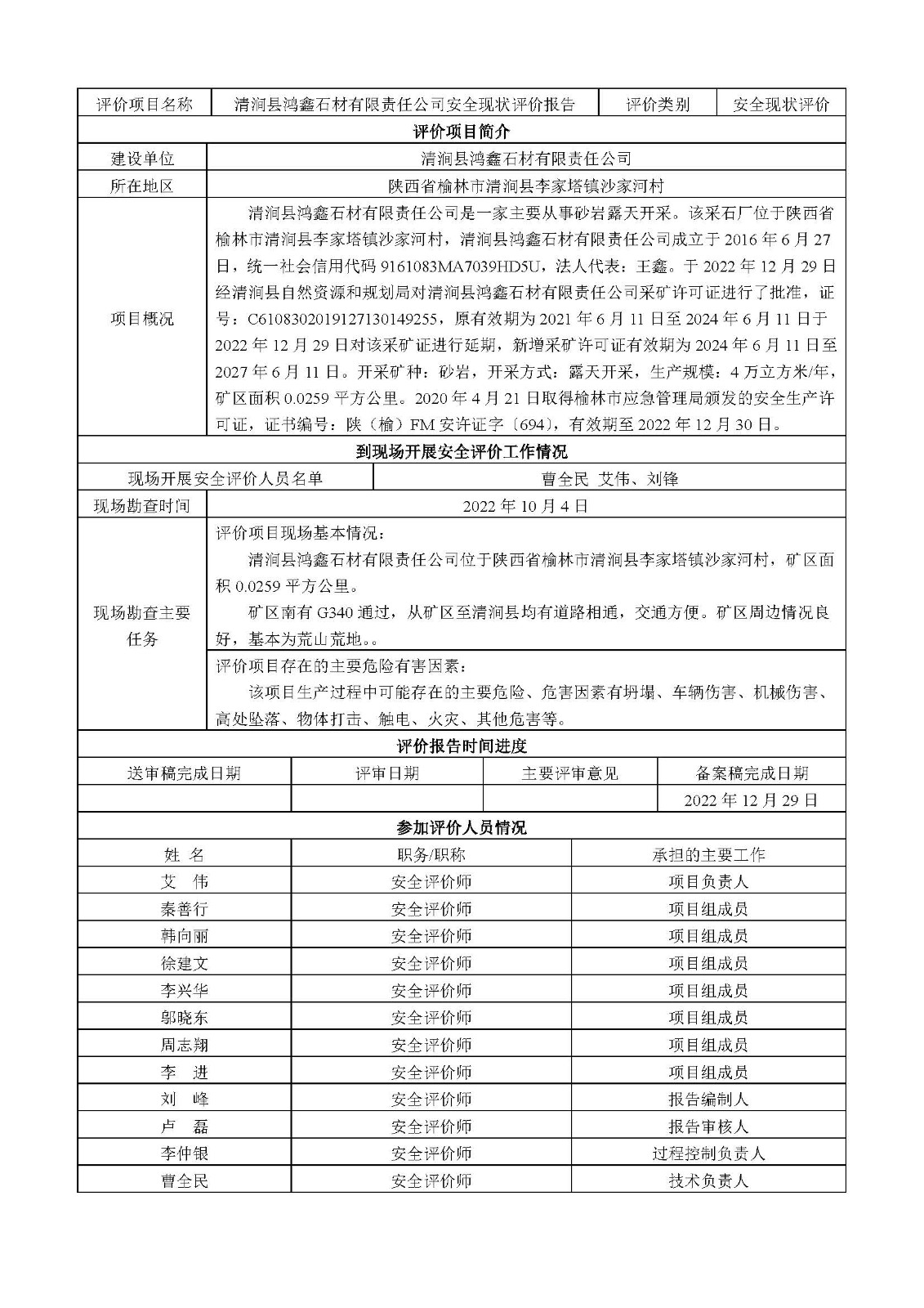 KLDAP[2022]-3.12 清澗縣鴻鑫建材有限責任公司安全現狀評價