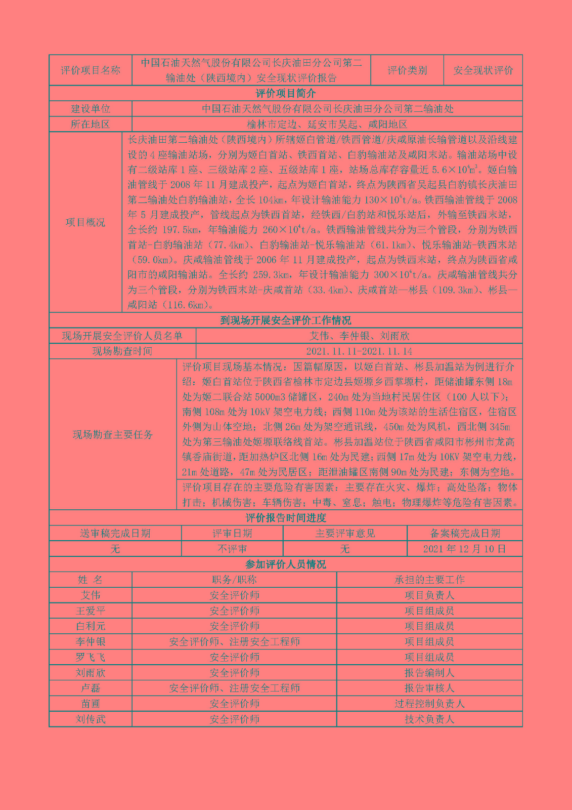 KLDAP-[2021]-2.5 中國石油天然氣股份有限公司長慶油田分公司第二輸油處2021年第二輸油處安全現(xiàn)狀評價(jià)