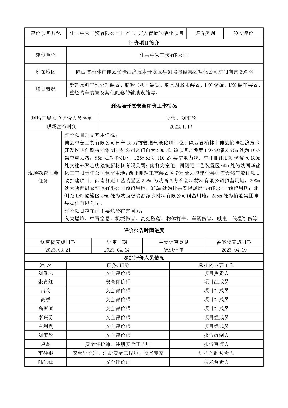 KLDAP-[2021]-2.7 佳縣中宏工貿有限公司日產15萬方管道氣液化項目安全驗收評價