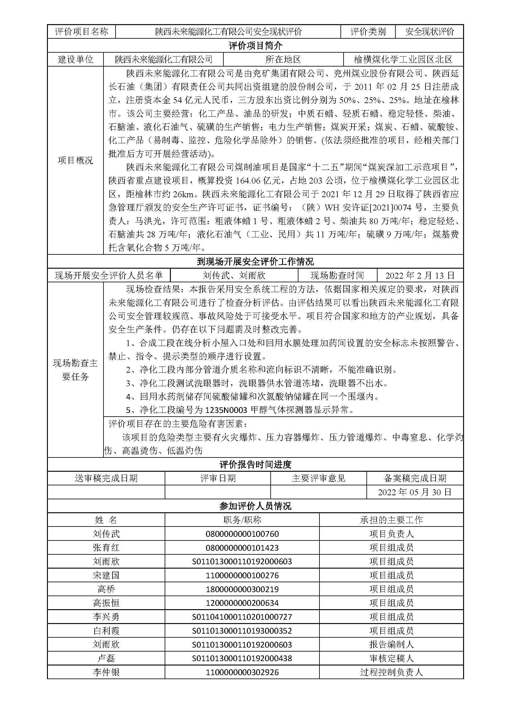 KLDAP-[2022]-2.3 陜西未來能源化工有限公司安全現(xiàn)狀