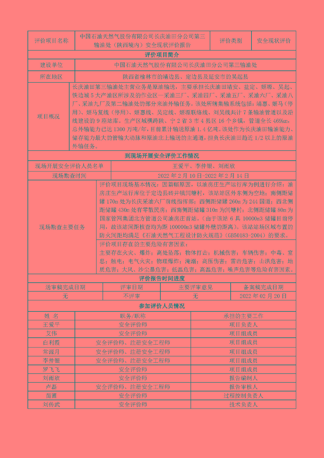 KLDAP-[2022]-2.4 中國石油天然氣股份有限公司長慶油田分公司第三輸油處2021年第三輸油處安全現(xiàn)狀評價