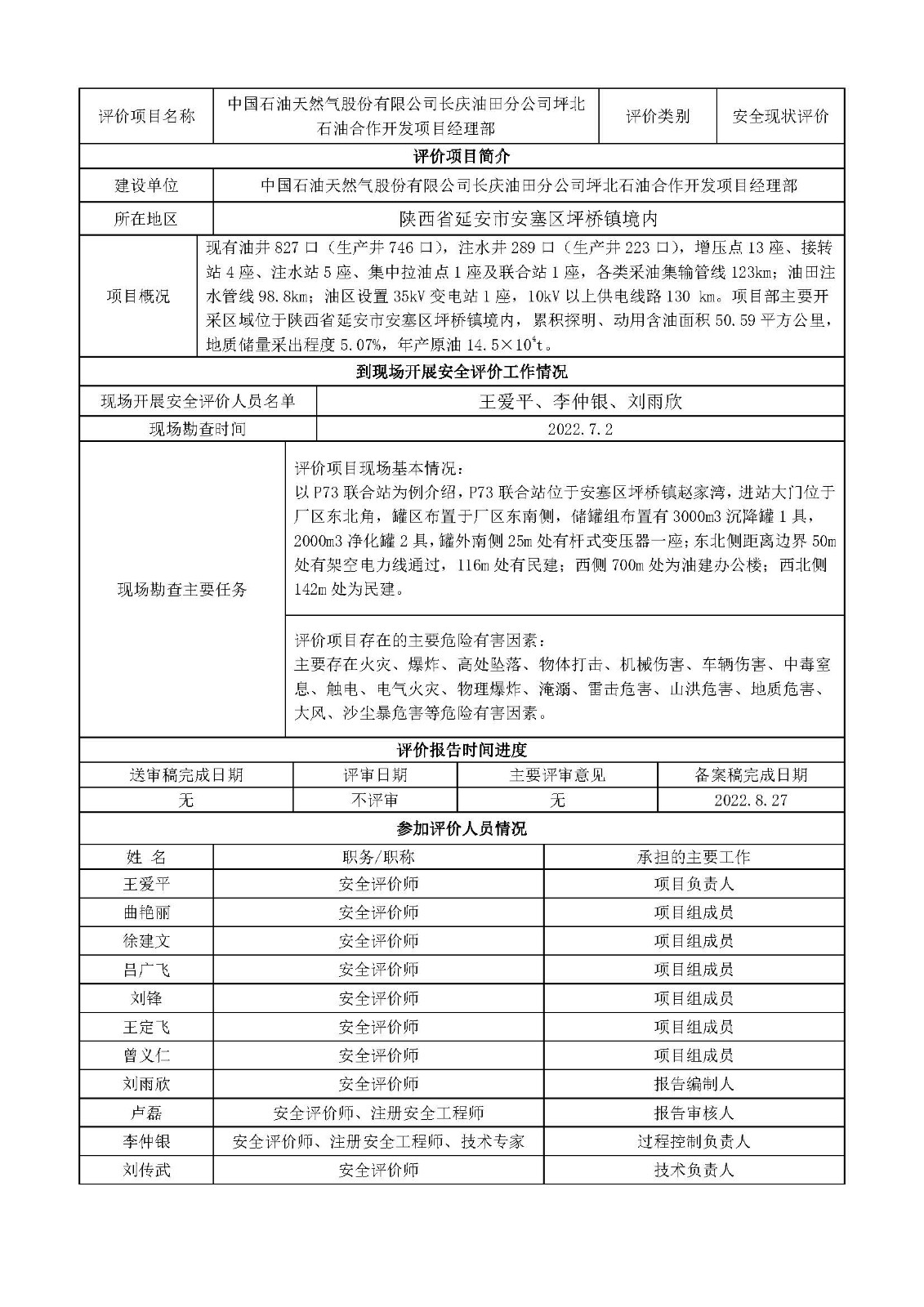 KLDAP-[2022]-2.13 中國石油天然氣股份有限公司長慶油田分公司坪北石油合作開發(fā)項目經理部安全現(xiàn)狀評價