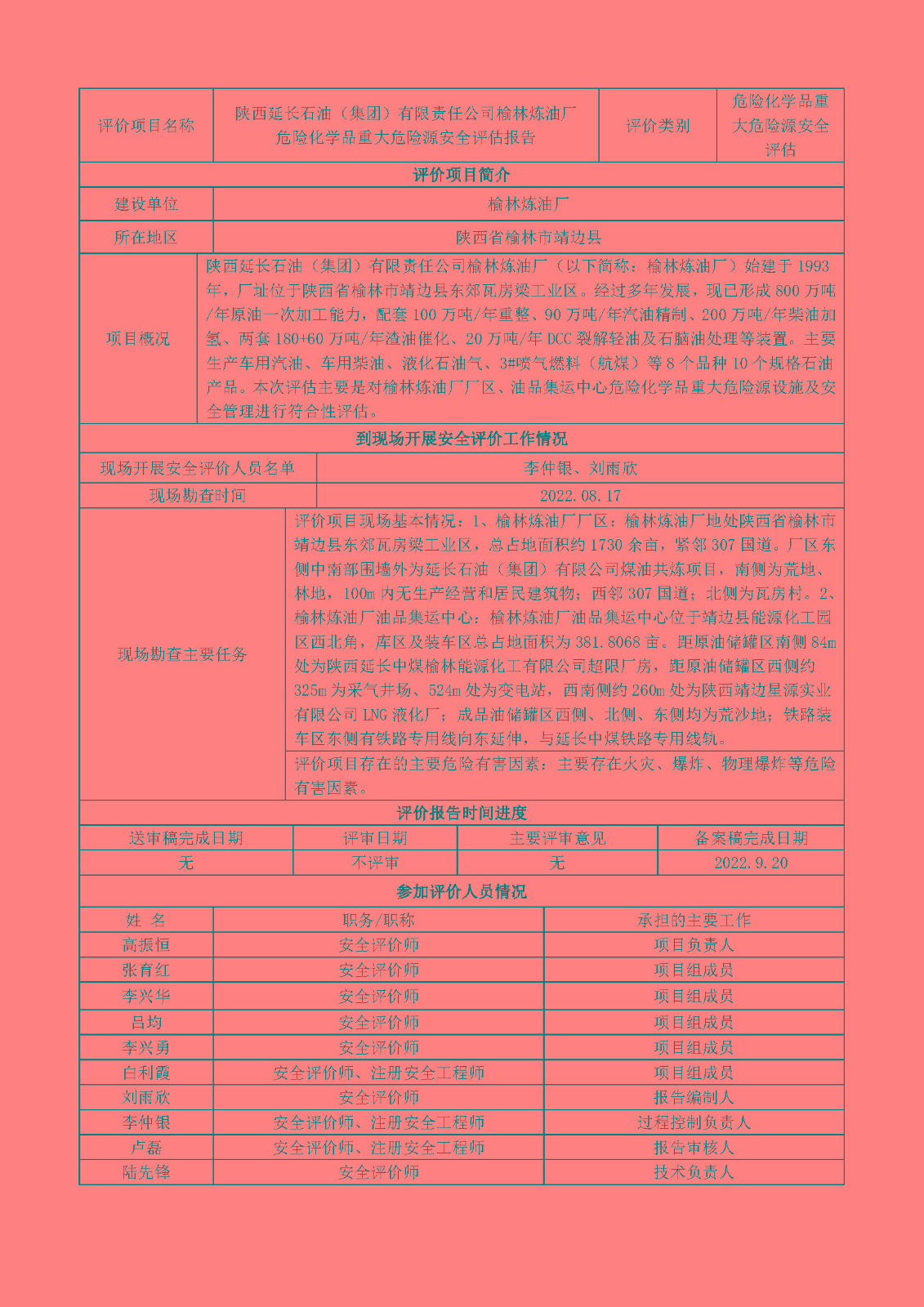 KLDAP-[2022]-2.15 陜西延長石油(集團)有限責任公司榆林煉油廠危險化學品重大危險源評估