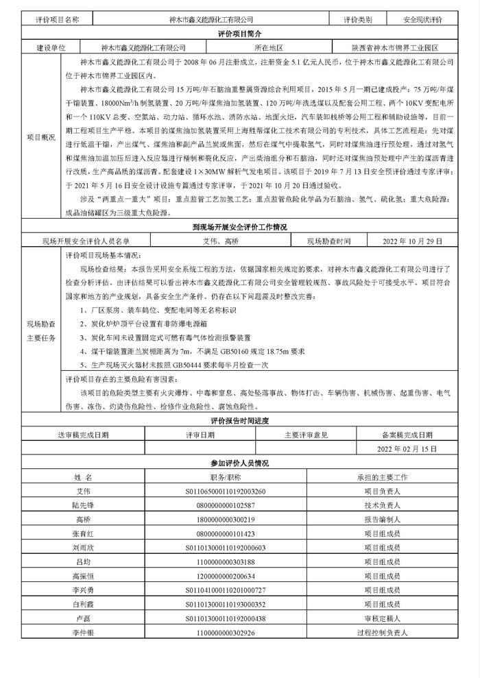 KLDAP-[2022]-2.17 神木市鑫義能源化工有限公司安全現(xiàn)狀評價